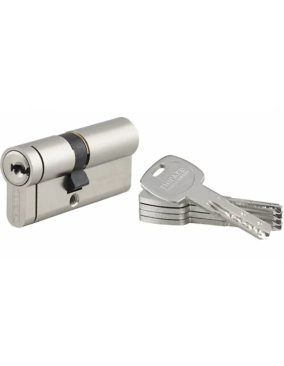 Les points Clés :Cylindre Profil EuropéenCylindre Double Entrée 40 x 30 mmCylindre débrayable Cylindre de Très Haute SécuritéMécanisme à 8 GoupillesProtection Anti-ArrachementProtection Anti-PerçageProtection Anti-CrochetageProtection Anti-Snap5 Clés Plates réversiblesCarte de Propriété Niveau de Sécurité :