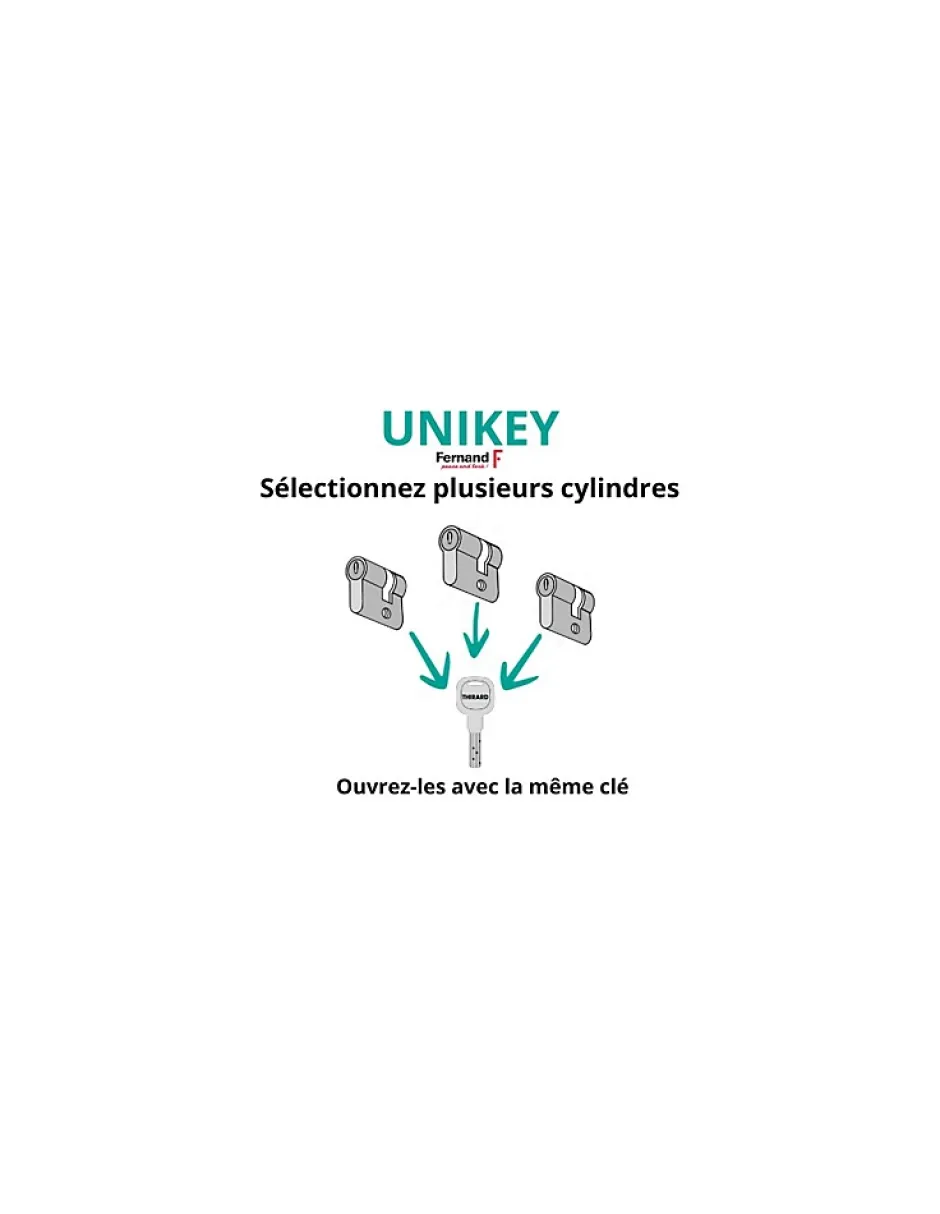 Attention : Ce produit en s’entrouvrant et un produit spécifique. Ces produits s’ouvrent tous avec la même clé si vous commandez plusieurs produits identiques, vous pourrez ouvrir avec une seule et unique clé tous les éléments.Comment obtenir un système clé unique ?Pour obtenir un ensemble de cylindres s’entrouvrant ou système clé unique, il vous suffit de définir les dimensions des cylindres, les spécificités souhaitées et ensuite de commander plusieurs éléments aux spécificités identiques.Exemple :Cylindre de serrure à double entrée Transit 1 , 30x30mm, s’entrouvrant nickel, 5 clés réversiblesCylindre de serrure à double entrée Transit 1, 30x40mm, s’entrouvrant nickel, 5 clés réversiblesComment prendre les mesures de son cylindre ?A l’aide d’une règle ou d’un instrument de mesure, il vous faut mesurer la distance entre le bord de votre porte (intérieur et extérieur) et le milieu du trou de la vis de fixation du cylindre. Il se peut que la distance ne soit pas la même des deux côtés.Dans le cas ou votre porte ait une mesure peu commune et ne convienne à aucun cylindre au millimètre près, il est acceptable de laisser dépasser son cylindre à l’extérieur de 5mm maximum, tolérance de dépassement qui garantit la sécurité de votre cylindreCaractéristiques TechniquesClé ProtégéeOuiDébrayableNonMatièreLaiton nickeléGammeTransit 1Nombre de Clés5Nombre de Goupilles6Niveau de Sécurité8/10PannetonStandardLongueur (en mm)30x35mmTypeCylindre double entréeProfilEuropéen