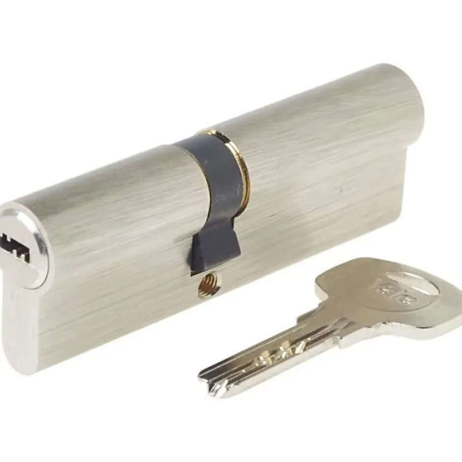 Cylindre européen Yale Série 1000+ débrayable 40×50 mm en laiton nickelé, 6 goupilles (10 000+ combinaisons), protections anti-perçage et anti-crochetage, livré avec 4 clés réversibles, carte personnelle et vis de fixation.