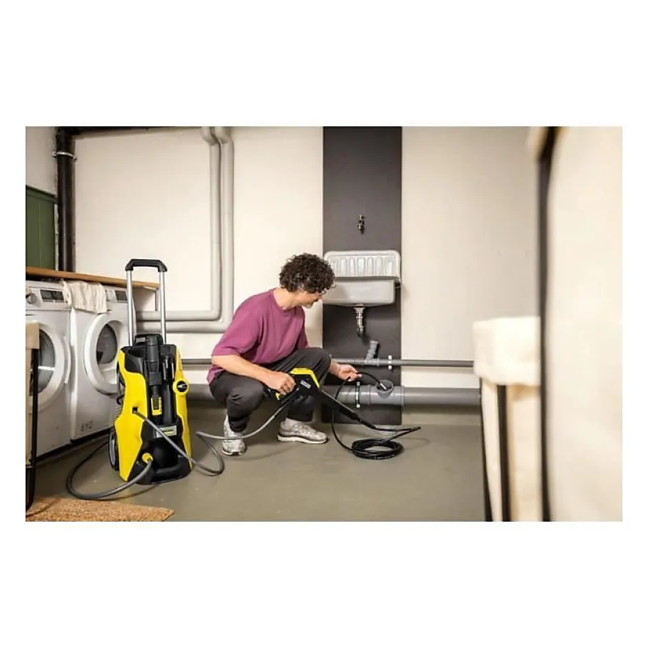 - Tuyau flexible de 15 mètres renforcé par tissu tressé, idéal pour manœuvrer dans les coudes.