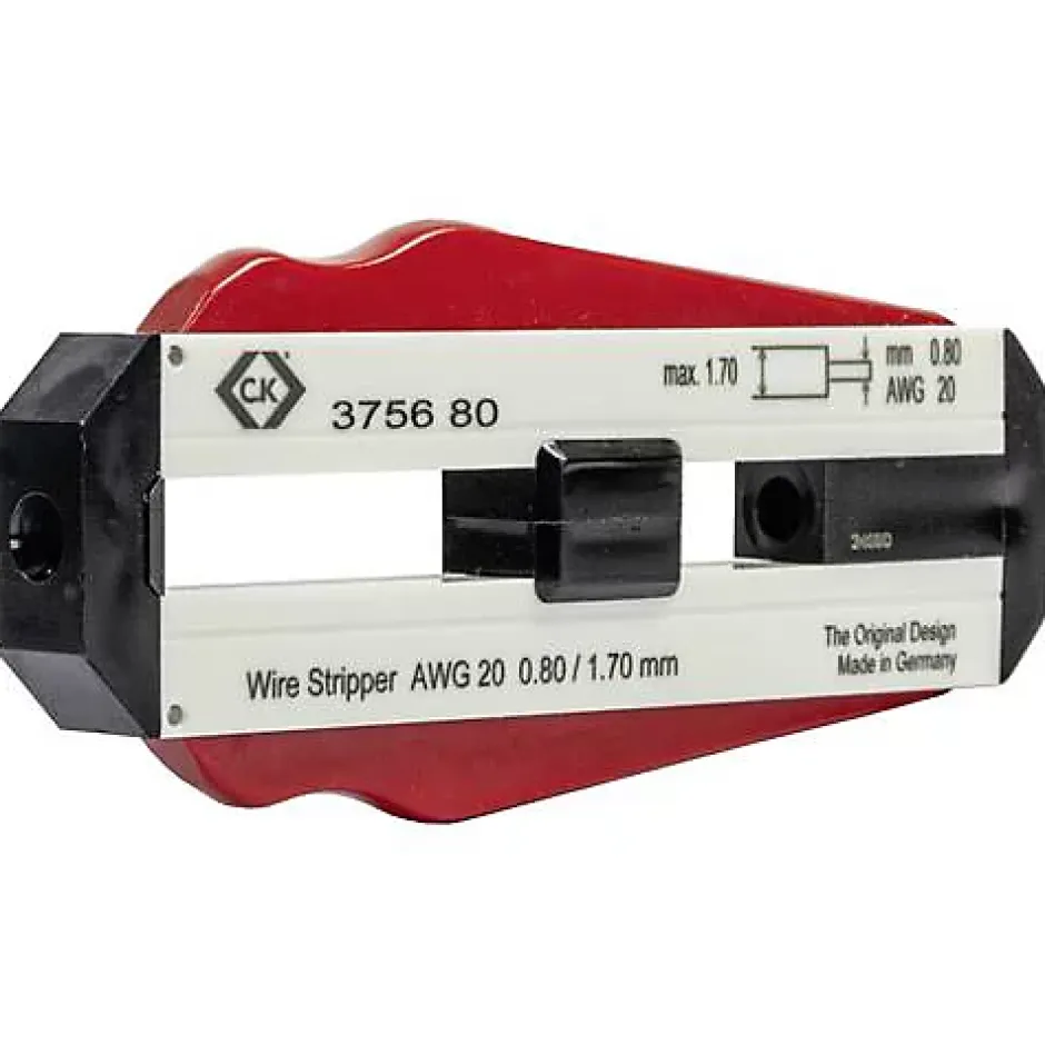 Dénudeur C.K T3756 conçu pour un dénudage précis des fils en PVC ou PTFE, avec butée de profondeur réglable pour des longueurs répétables jusqu’à 50 mm. Lames en acier trempé par induction pour une longévité et une qualité de coupe supérieures, capacité de 0,25 à 0,80 mm, format compact pour un usage ergonomique et professionnel.
