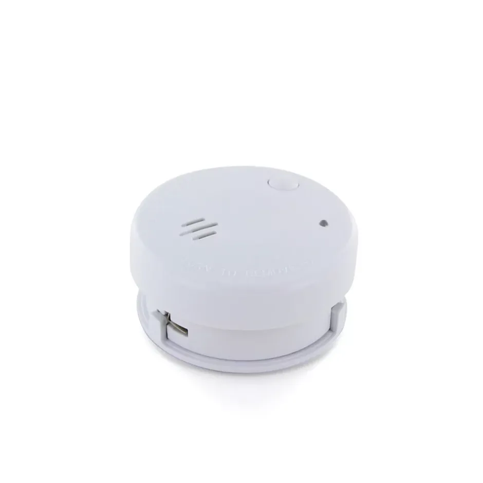 Détecteur de fumée. Couleur(s) : blanc. Portée : jusqu’à 25m². Mini bouton « test » pour vérifier le niveau sonore. Signal sonore de batterie faible. Niveau sonore : 85 dB (à 3m). Fonctionne avec 3 piles CR2450. Utilisation intérieure uniquement. Garantie : 5 ans
