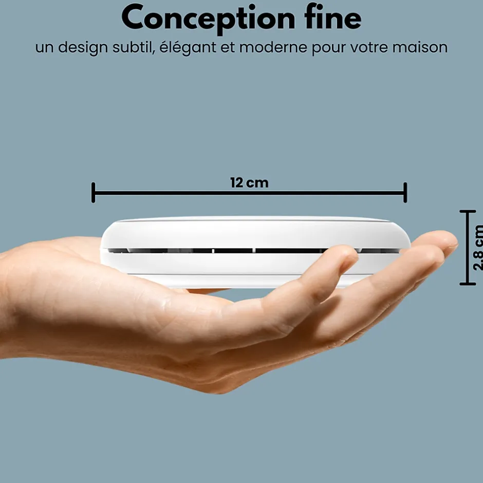 Le détecteur de fumée combiné Aroha Safety Pro de la gamme Sleep Line offre une protection fiable contre les incendies et les intoxications au monoxyde de carbone. Avec son design discret et l’absence de voyant LED en veille, ce détecteur de fumée fait partie de la gamme Aroha Sleep Line, spécialement conçue pour un sommeil paisible. Ce détecteur de fumée et de monoxyde de carbone autonome s’installe en une minute seulement, en toute simplicité.