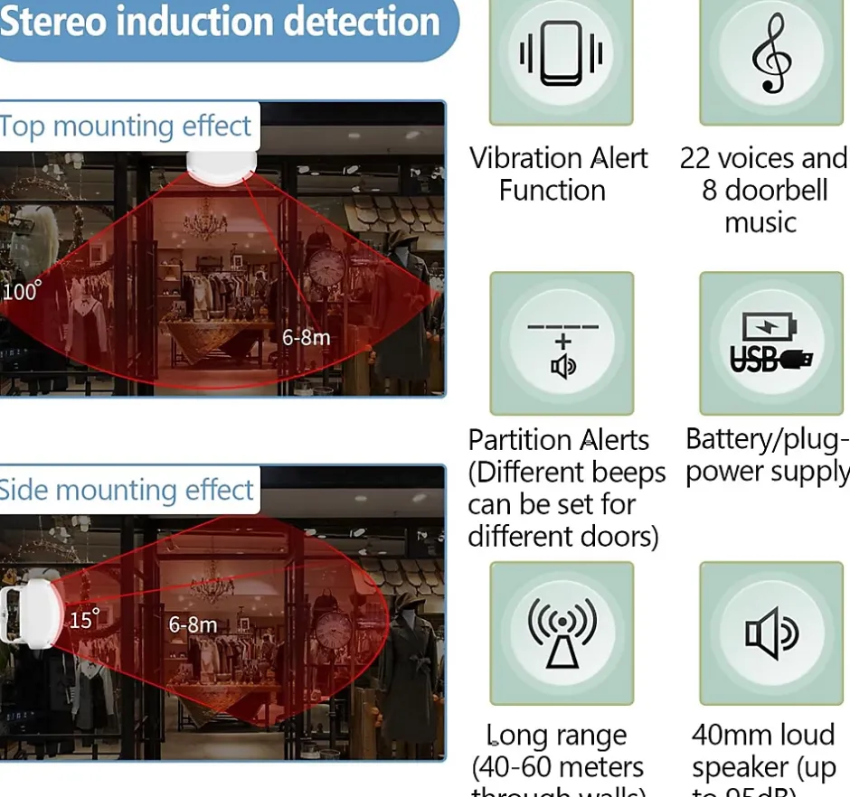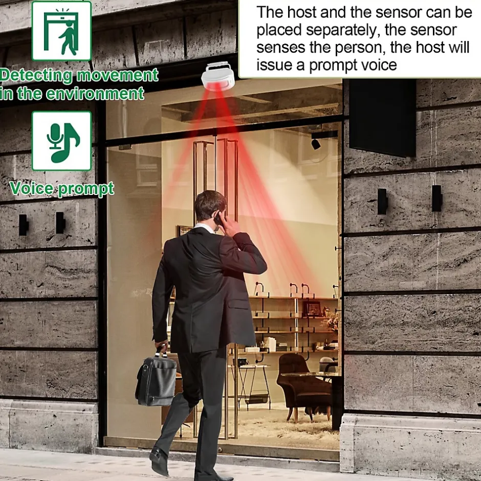 Sensibilité Améliorée : Notre alarme maison sans fil est équipée d’un capteur infrarouge à forte sensibilité, détectant les mouvements avec précision et rapidité.Installation Facile et Sans Fil : Plus besoin de câbles encombrants. Fixez simplement le capteur infrarouge au mur et il détectera les mouvements dans votre environnement, que ce soit dans les allées, les porches, les portes, les hangars, les bureaux, les trottoirs, les piscines, les magasins, et bien plus encore.Alarme de Sécurité Domestique : Grâce à un haut-parleur indépendant d’une puissance maximale de 95 dB, soyez informé de la présence de visiteurs, où que vous soyez dans votre maison.