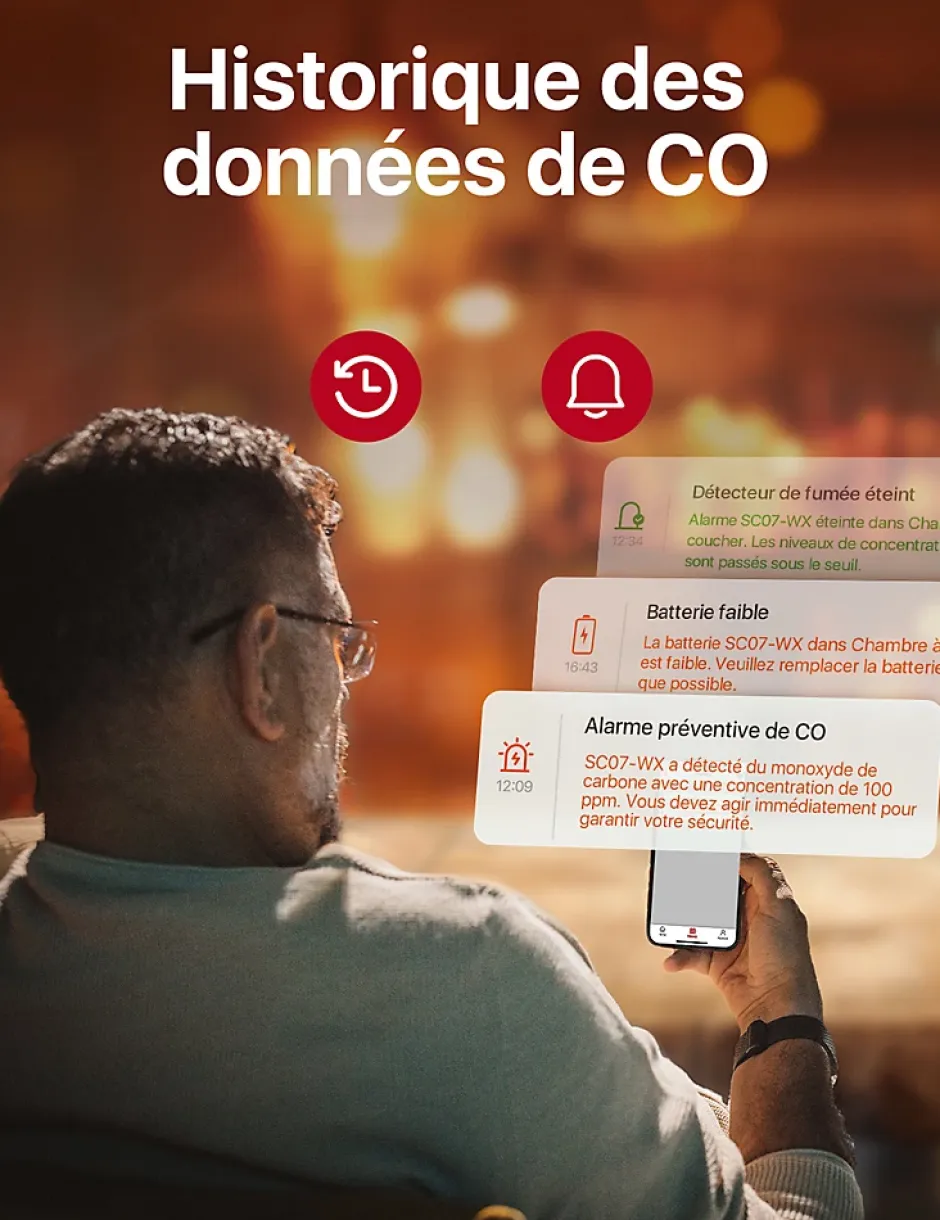 - Alarme interconnectée sans fil pour une protection coordonnée dans toutes les pièces de la maison
