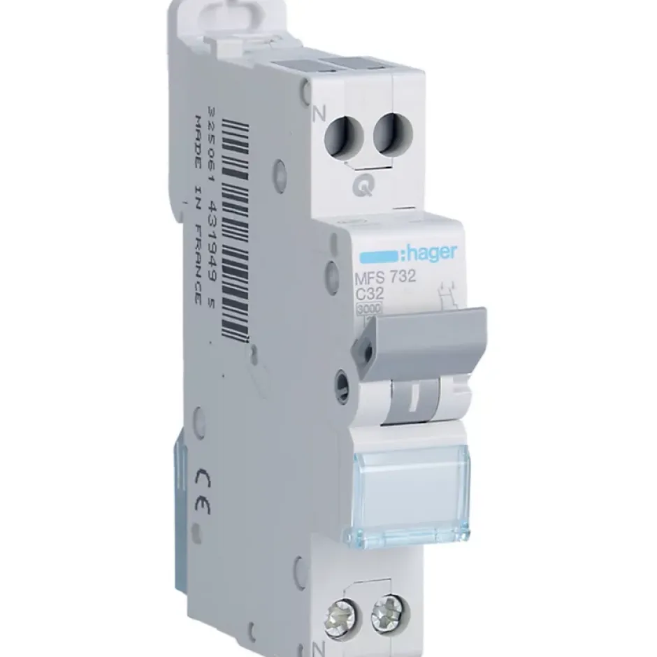 Disjoncteur 1P+N 3kA C -32A SanVis 1 module de la marque Hager. Calibre (A) : 32 Nombre de module : 1 Courbe : C Nombre de pôles : 1P+N Pouvoir de coupures (kA) : 3