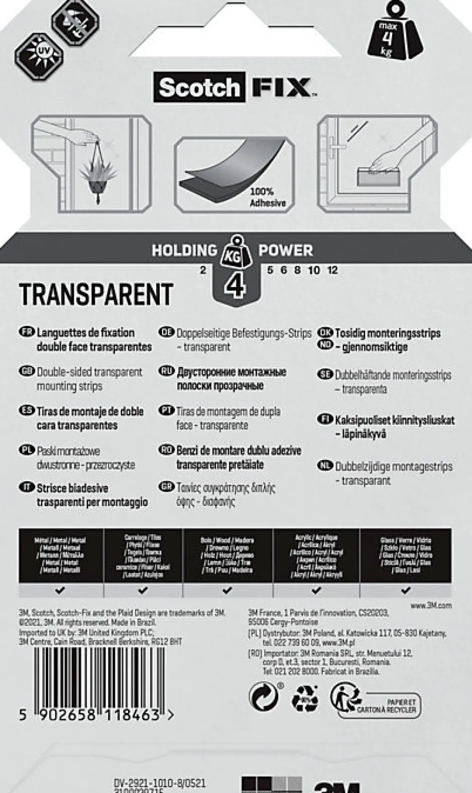 Double face Scotch Extrême 76 mm x 25 mm transparent, 8 pièces 4 kg