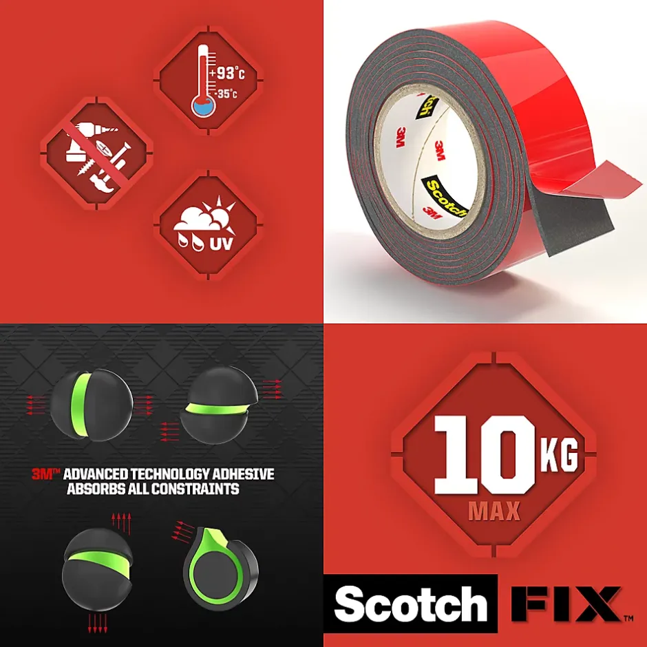 Double face intérieur Scotch Extrême 19 mm x 1.5 m noir, 10 kg