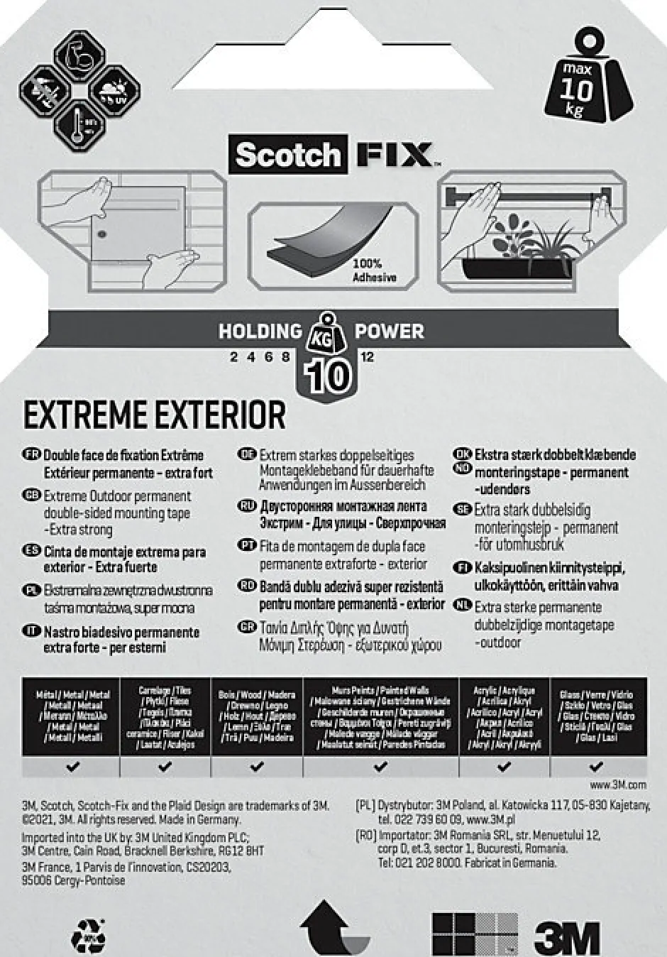 Rapide et pratique, Fixation extra forte en extérieur, Résiste aux intempéries, Résiste aux U.V., Bricoler sans outil et sans percer