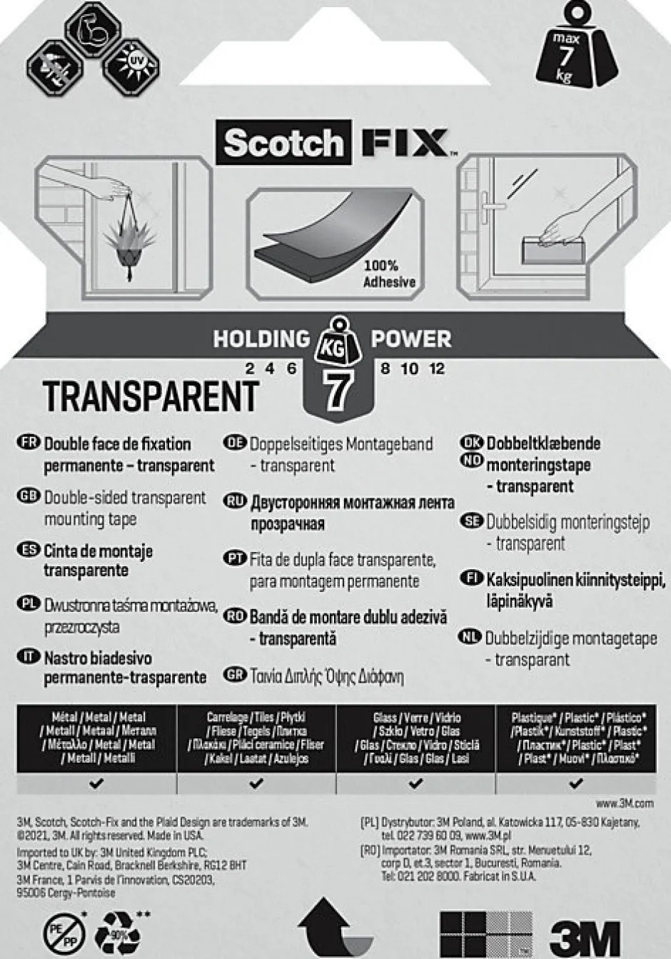 Double face intérieur Scotch Extrême 19 mm x 1.5 m transparent, 7 kg
