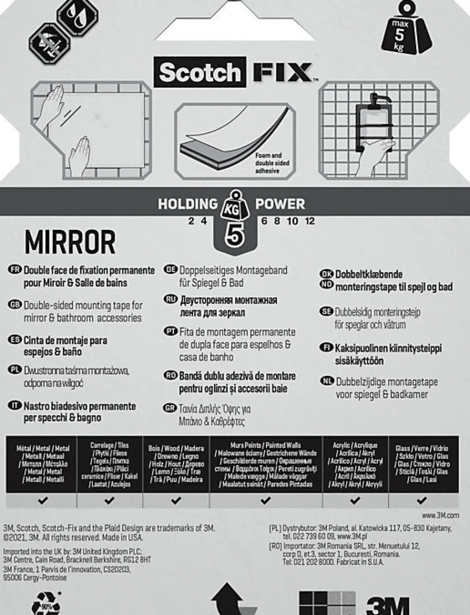 Double face miroir 3M 19 mm x 5 m blanc, 5 kg