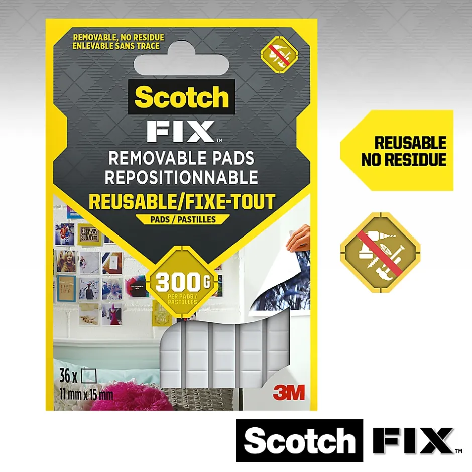 Double face repositionnable 3M 11 x 15 mm blanc, 36 carrés 300 g