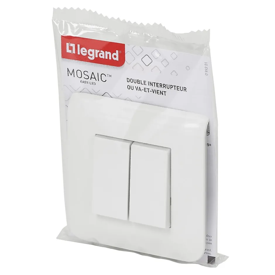 Double interrupteur va-et-vient à vis Legrand Mosaïc blanc