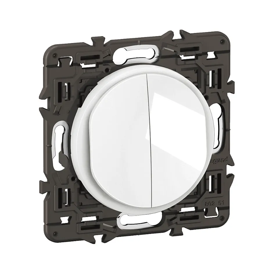 Double interrupteur ou va-et-vient Céliane 10AX à bornes automatiques – livré avec enjoliveur Blanc et support montés, à équiper d’une plaque de finition