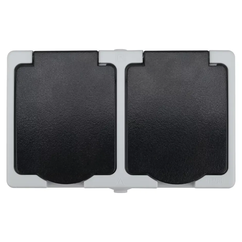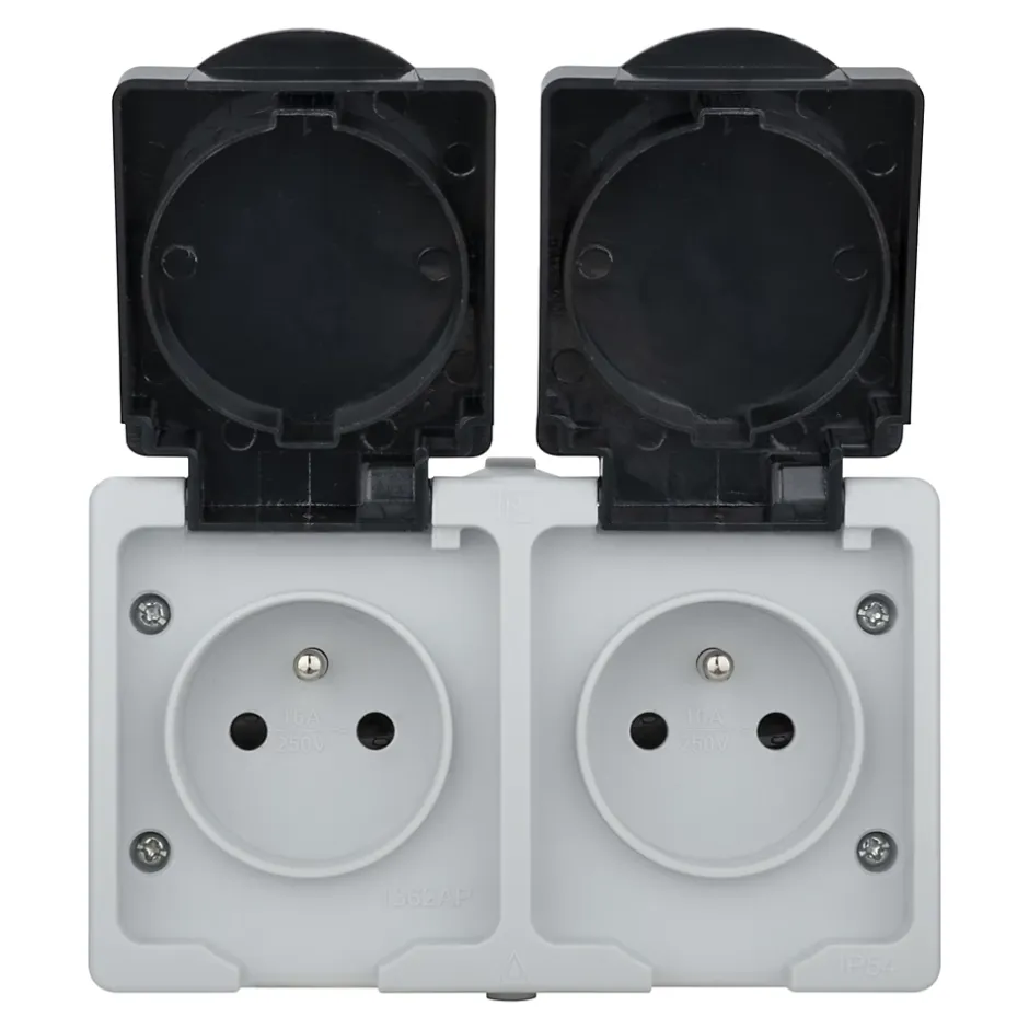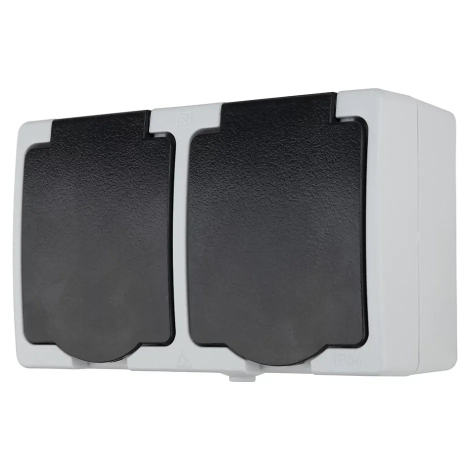 - Prise imperméable avec protection de sécurité, indice de protection IP55, robuste et résistante aux chocs, pour une alimentation électrique sûre en extérieur