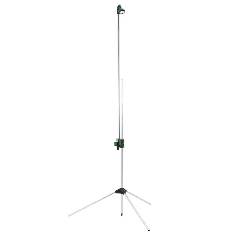 Douche de jardin réglable, de 1,35m à 2,35m. Fabriquée en aluminium et ABS. Tête d’arrosage à écran en aluminium. Vanne de fermeture avec régulateur d’eau réglable.