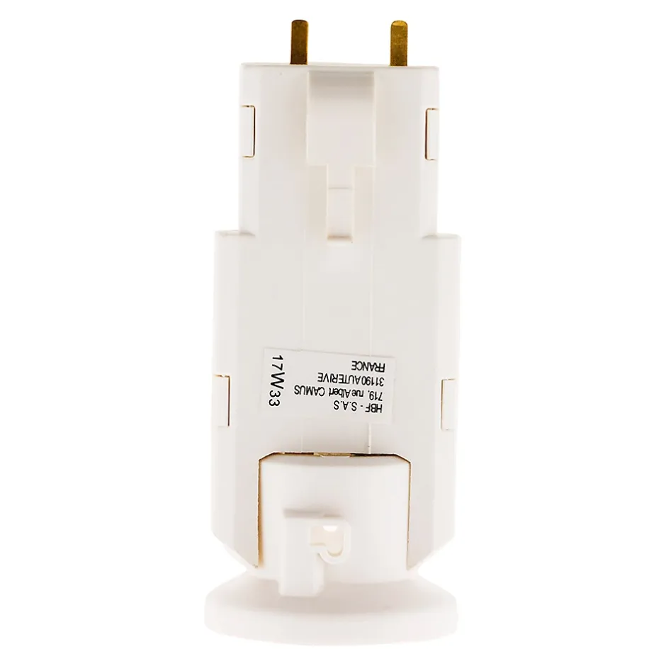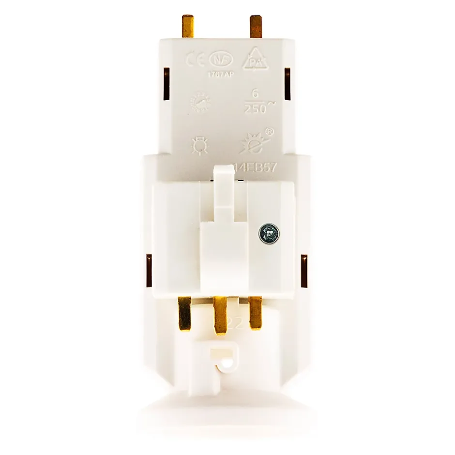 Douille avec Fiche DCL – 6A 250V – culot: E27 – Zenitech Ce kit comprend une douille à culot E27 DCL et une fiche DCL détachable 2P+T 60W sous 250V~ Pour l’installation d’un éclairage provisoire et test d’un point lumineux Certifié NF Existe en Culot : B22 (3545411408764), E27 (3545411408740)