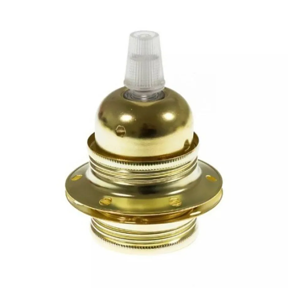 Créez des Luminaires Uniques avec la Douille Laiton E27 – Prête à l’emploiLa douille en métal avec une finition laiton, pour culot E27, est une solution polyvalente pour les passionnés de création luminaire. Prête à l’emploi, elle est fournie avec un serre-câble et deux anneaux de serrage pour fixer un abat-jour.Sa compatibilité avec les câbles revêtus textile 2 fils permet une association harmonieuse avec une variété de styles et de designs. Que ce soit pour la création de luminaires personnalisés ou la rénovation de luminaires existants, cette douille offre une grande liberté de conception.Avec une température maximale de 230 degrés et une capacité de courant jusqu’à 4A, elle garantit sécurité et fiabilité. Fabriquée en acier cuivré et alimentée sur 2 bornes, elle assure une fixation solide.Exprimez votre créativité et donnez vie à vos idées lumineuses avec cette douille E27 !