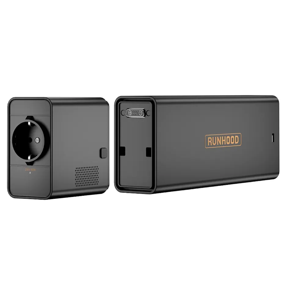 RUNHOOD EB324 + AE80 – Batterie Externe Modulaire 324 Wh avec Sortie AC 80 WAlimentez vos appareils où que vous soyez grâce à la batterie EB324 (324 Wh – 90 000 mAh) de RUNHOOD, couplée à son module AE80 pour une sortie secteur sinusoïdale pure de 80 W. Cette combinaison compacte et performante est idéale pour le camping, le bureau nomade, la photo ou les imprévus du quotidien. Capacité et fiabilité 324 Wh de capacité énergétique pour recharger smartphones, ordinateurs, caméras, drones, lampes et petits appareils Plus de 6 000 cycles à 80 % – conçu pour durer plus de 10 ans Garantie 2 ans⚡ Sortie AC & recharge intelligente AE80 intégré : 1 × sortie AC 80 W (sinus pur) Recharge rapide : via prise secteur PD 100 W ou panneau solaire (SERI 100 recommandé) Recharge économique : panneau solaire compatible pour autonomie verte et illimitéeSans superflu USB-C universel : recharge directe avec câble Type-C – fini les câbles en trop Pas besoin de station : EB324 + AE80 fonctionne de manière autonome Inclus dans ce pack 1 × Batterie EB324 (324 Wh) 1 × Module AC AE80 (sortie secteur 80 W)Le kit parfait pour les nomades, les photographes ou les utilisateurs en quête de fiabilité, de modularité et d’autonomie partout et à tout moment.