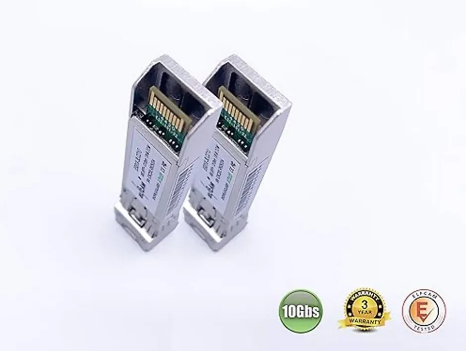 Description généraleLe pack de 2 modules Elfcam SFP+ 10GBase-LR offre une connectivité longue portée jusqu’à 10 km sur fibre monomode OS2. Dotés de connecteurs LC/UPC duplex et fonctionnant à 1310 nm, ces transceivers sont compatibles avec les équipements Freebox Ultra, Cisco, Huawei, TP-Link et bien d’autres.Spécifications techniques Type : SFP+ 10G LR (Long Reach) Connecteurs : LC/UPC Duplex Fibre supportée : OS2 9/125 μm monomode Longueur d’onde : 1310 nm Distance : jusqu’à 10 km Débit : 10 Gbps Support DDM : oui – diagnostic intégré Conformité : MSA / SFF-8472 Garantie : 5 ans – assistance France 24/7Compatibilité et applications Compatibilité : Freebox Ultra, Cisco SFP-10G-LR, Ubiquiti UF-SM-10G, TP-Link, Huawei, Mikrotik, Netgear, Juniper, D-Link… Applications : backbone optique, panneaux FAP, tiroirs optiques FHD, réseaux longue portéeInstallationLes modules s’insèrent dans tout port SFP+ standard. Aucun pilote requis – Plug & Play. Ils prennent en charge le diagnostic temps réel (DDM) pour surveiller puissance, température et tension.UtilisationConçu pour les réseaux d’entreprise exigeants, ce module assure une liaison stable et rapide entre deux points distants via fibre OS2. Idéal pour les installations en baies, infrastructures LAN/WAN ou liaisons FTTO.Autres informationsChaque module est testé avant expédition. Boîtier métallique pour une dissipation thermique optimale et conformité aux standards 10G Ethernet Cat 8.Images du produit