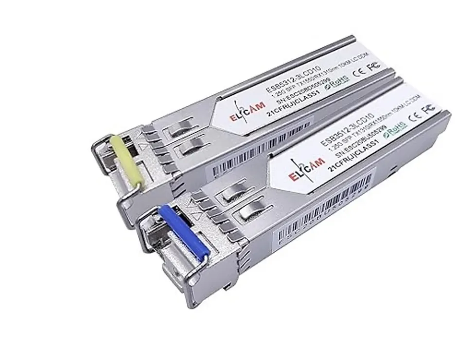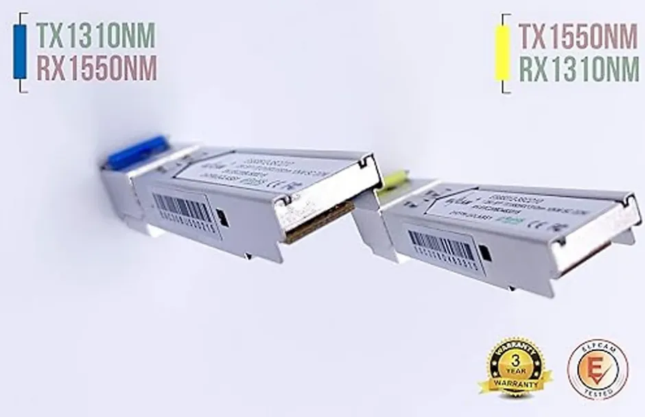 Description généraleLe lot de 2 modules SFP Elfcam WDM 1.25 Gbps avec connecteurs SC monomode permet la transmission bidirectionnelle (BiDi) sur une seule fibre optique. Grâce à la technologie WDM, ces modules simplifient les architectures fibre et assurent une portée allant jusqu’à 10 km, le tout sans configuration.Spécifications techniques Type : SFP WDM SC monomode (BiDi) Connecteurs : SC/UPC Simplex monomode Longueur d’onde : TX 1310nm / RX 1550nm & TX 1550nm / RX 1310nm Distance : jusqu’à 10 km Débit : 1.25 Gbps Technologie : WDM bidirectionnelle + DDM intégré Format : MSA compatible – hot-swappable Garantie : 3 ans – support client France 24/7Compatibilité et applications Compatibilité : Cisco, Huawei, TP-Link, Mikrotik, ZTE, D-Link, Ubiquiti, convertisseurs RJ45/fibre Utilisation : interconnexion de bâtiments, backbone fibre, baies réseau, NVR, routeursInstallationModules à insérer dans tout port SFP compatible MSA. Ils s’activent automatiquement (Plug & Play), aucune configuration requise.UtilisationParfait pour les réseaux unifibre où l’économie de fibre et la fiabilité sont prioritaires. Le système TX/RX inversé sur les deux modules garantit un couplage simple et efficace.Autres informationsDesign robuste en aluminium, refroidissement passif, signal stable même sur longue distance. Chaque module est testé individuellement.Images du produit
