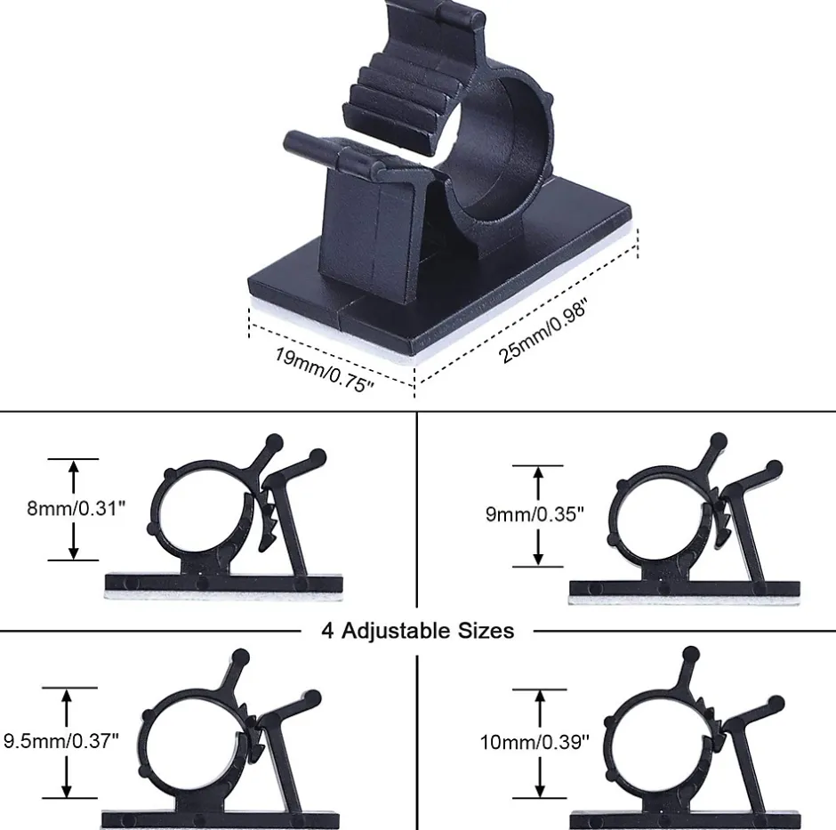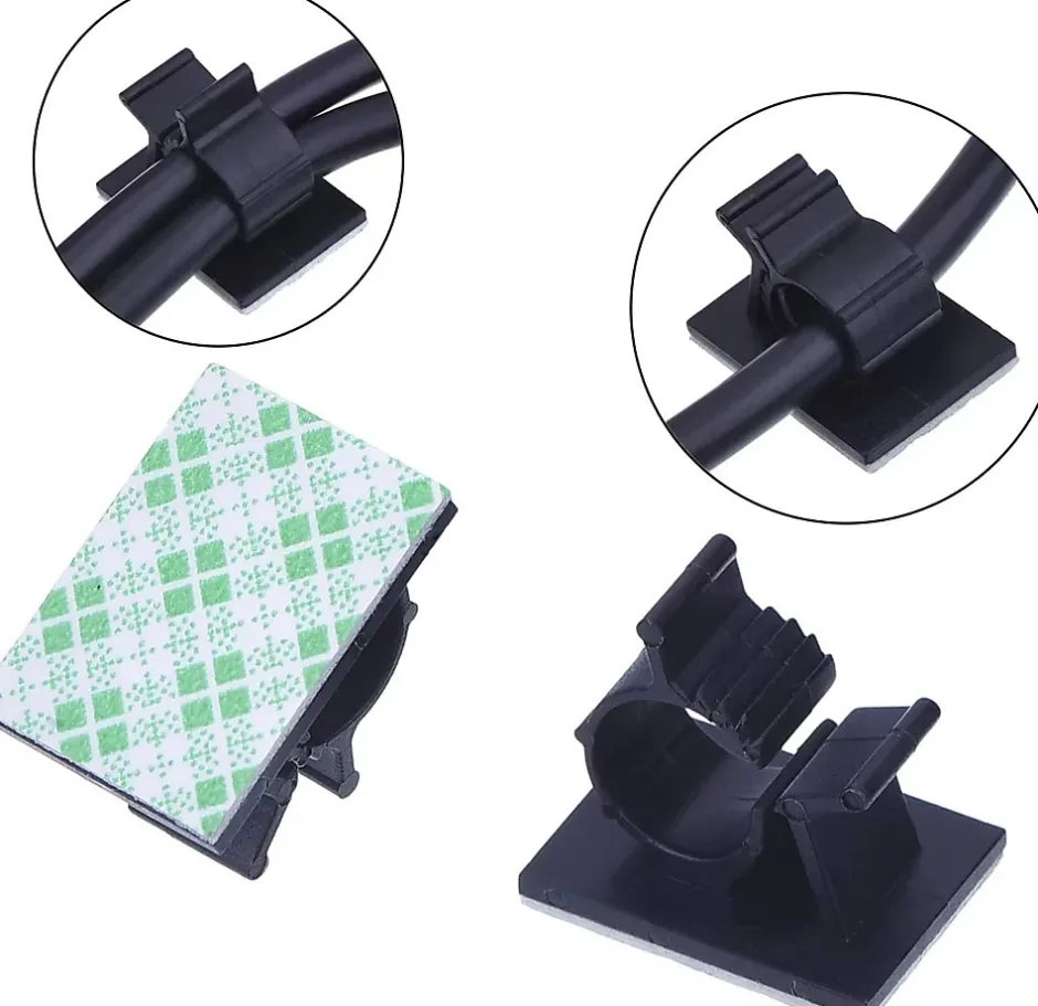 Description généraleLot de 60 clips de fixation pour câbles avec adhésif puissant, spécialement conçus pour organiser les câbles fibre optique, USB, téléphoniques, audio ou d’alimentation à la maison, au bureau ou sur les lieux de travail.Ces clips muraux autocollants permettent une gestion propre des câbles et une installation facile sans outils sur différentes surfaces telles que le bois, le plastique, le verre, le métal ou les murs peints.Caractéristiques techniques Marque : Elfcam Contenu : Lot de 60 pièces Dimensions du produit : 3 mm x 67 mm Poids : 60 g Couleur : Noir Nombre de pièces : 60 Fabricant : Zhuhai Anbaoshi Technology Largeur de câble compatible : jusqu’à 6 mmCompatibilité et applications Compatibles avec : câbles fibre optique, câbles USB (USB A/B, USB 2.0, Type C, Lightning), câbles téléphoniques ADSL, câbles d’imprimante, câbles audio numériques, câbles audio, câbles d’alimentation Diamètre de câble pris en charge : de 0,5 mm à 6,0 mm Utilisation possible : maison, bureau, voiture, centres multimédia, installations réseauInstallationIl suffit de retirer le film protecteur et de coller le clip sur la surface souhaitée. Aucun outil requis. Pour les câbles plus épais (diamètre > 3 mm) ou multiples, la barre intérieure peut être découpée pour offrir plus d’espace.UtilisationIdéal pour une gestion discrète et efficace des câbles dans les environnements domestiques ou professionnels. Permet de maintenir les câbles bien rangés et améliore l’esthétique générale de l’espace.Autres informationsGarantie fabricant : 5 ans. Service client Elfcam disponible 24h/24 et 7j/7 en France. Produit fiable, durable et facile à utiliser, certifié CE.Images du produit