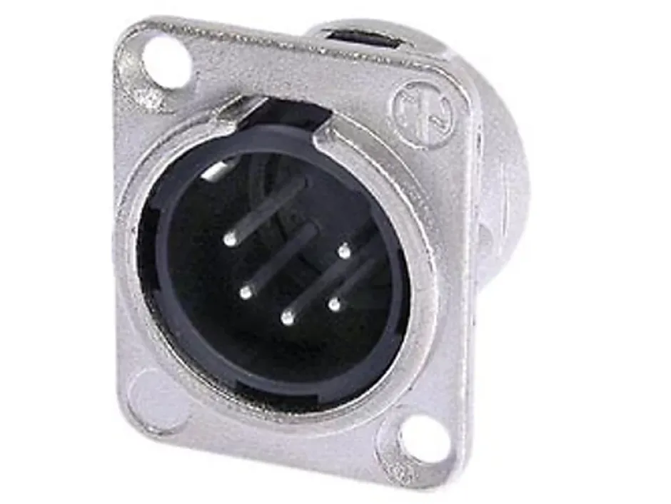 Connecteur mâle a 5 points. Corps nickele et contacts argentes.