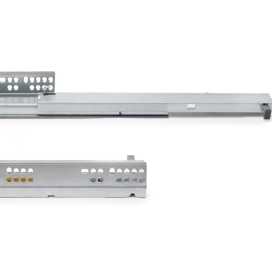 Les coulisses invisibles Emuca 3122505 argent sont conçues pour des tiroirs de 500 mm de profondeur. Elles offrent une sortie totale pour un accès complet, un système push pour ouverture par pression, et un glissement sur galets de delrin haute qualité. Construites en acier avec finition zinguée, elles garantissent durabilité et résistance. Charge maximale supportée : 30 kg. Vendues par paire avec réglage vertical +4,5 mm et système de verrouillage intégré.
