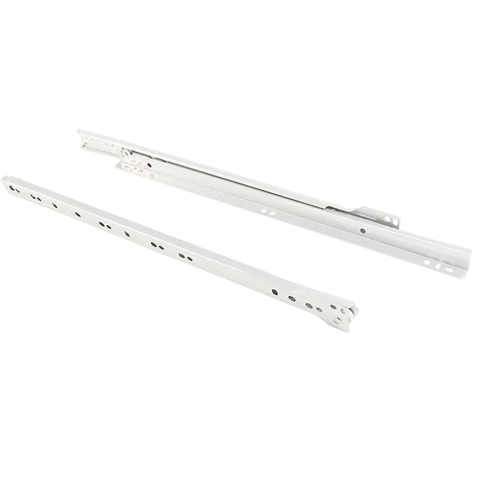 Coulisses à roulettes à sortie partielle et fermeture avec chute. Longueur de la coulisse L 550 mm. Capacité de charge maximum 20 kg. Possibilité de montage avec Eurovis tête plate avec pré-perçage de D. 5 mm. Fabriquées en acier peint blanc RAL 9001. Chaque lot contient 5 paires de coulisses emballées individuellement. Fermeture amortie disponible (non incluse). VOIR LES MESURES DU PRODUIT DANS LES IMAGES. Les coulisses de roulettes T30 sont conçues pour garantir un glissement fluide et fiable dans tous les types d’applications de mobilier. Elles offrent un coulissant partiel avec fermeture par gravité et sont disponibles en différentes longueurs et finitions, ce qui permet de les adapter facilement à différents formats de tiroirs.Fabriquées en acier résistant, elles supportent une charge maximale de 20 kg et sont compatibles avec des panneaux de 12 à 12,5 mm d’épaisseur. Elles s’installent à l’aide d’une vis Euro à tête plate, avec un pré-perçage de 5 mm.De plus, elles peuvent être montées avec un système de fermeture amortie (non inclus), qui améliore encore davantage l’expérience d’utilisation.