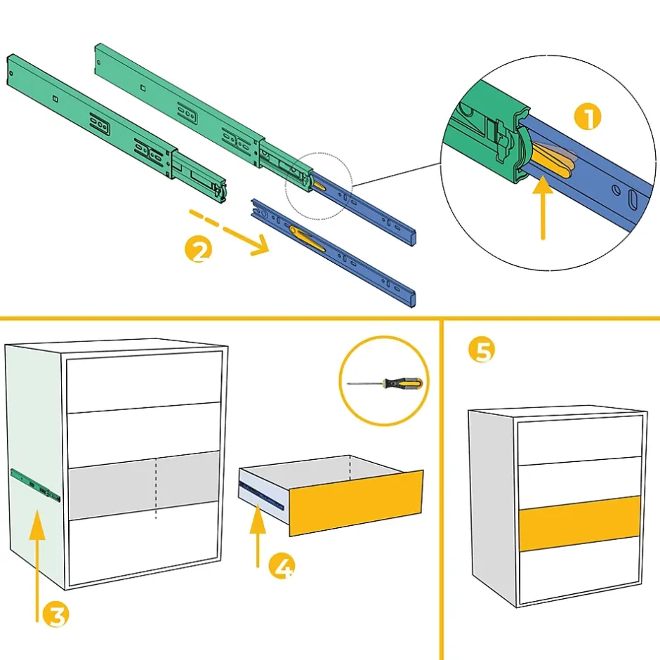 - Supporte jusqu’à 35 kg par jeu, idéal pour les tiroirs lourds.