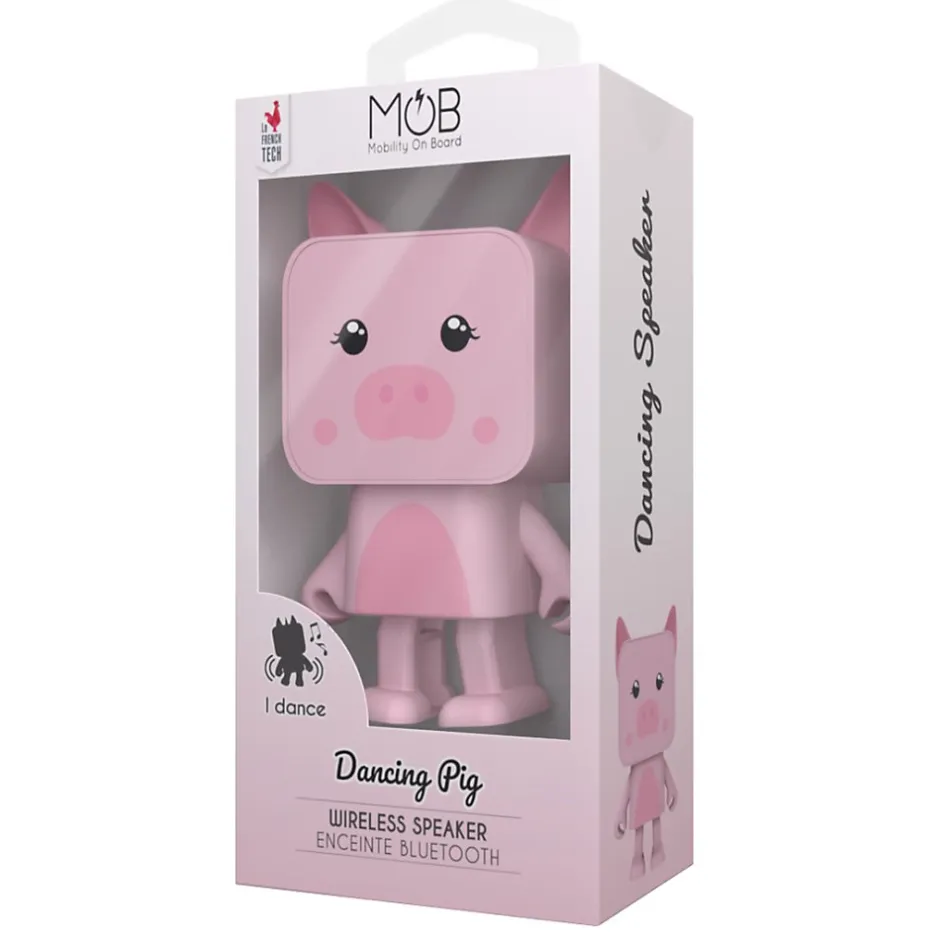 L’enceinte bluetooth dansante Cochon rose de Mobility On Board est dotée d’un son puissant et d’un design plus qu’original.Apportez une touche de fun sur vos bureaux et sur vos étagères avec cette enceinte Bluetooth dancing animal qui a le rythme dans la peau. Petite baffle dansante qui se déhanche au rythme de la musique diffusée. Cette enceinte fonctionne en Bluetooth et se recharge avec un câble Micro-USB fourni. Le mode « danseur » peut se désactiver grâce à un bouton dédié. L’enceinte est autonome pour 4 à 5 heures non stop. Cette enceinte Bluetooth dancing est déclinée en plusieurs animaux plus irrésistibles les uns que les autres ! Licorne, panda, ours, lama, hibou, renard ou chien peuvent même bouger en duo grâce à la fonction stéréo..Connexion sans-fil Bluetooth : 4.2Puissance 3WMode danse : rapide et normalMode stéréo : connecter deux enceintes ensembleKit mains-libres intégré Autonomie en fonctionnement : 4 à 5hAutonomie en veille : environ 10hDurée de charge : environ 2.5hDimensions : 66 x 42 x 93mm.