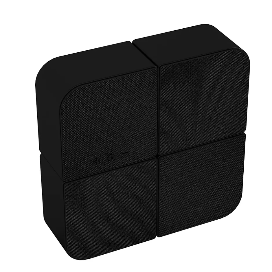KYF-SOUND-003 Mini Mur d’Enceintes Bluetooth 6.0 Modulable 20WDécouvrez le KYF-SOUND-003, un mini mur d’enceintes Bluetooth 6.0 compact et modulable. Avec 20W RMS de son clair et puissant, ses 4 enceintes magnétiques peuvent être utilisées ensemble ou séparément, offrant une flexibilité unique pour une expérience audio personnalisée, à la maison ou en déplacement.Points forts Son puissant 20W RMS : 4 enceintes de 5W pour un son clair et immersif. Bluetooth 6.0 : Connexion stable jusqu’à 28 m en champ libre. Design modulable : Enceintes séparables ou regroupables grâce à un système magnétique. Polyvalence : Lecture via Bluetooth, AUX 3,5 mm ou micro SD (jusqu’à 32 Go). Autonomie : 3 à 4 heures d’écoute, recharge rapide en 1,5 à 2,5 heures via USB-C. Mains libres : Microphone intégré pour des appels clairs. Appairage multiple : Connectez plusieurs enceintes pour un son amplifié. Portable : Compact (8 x 8 cm par enceinte) et léger, en ABS robuste.Caractéristiques techniques Audio : 4 haut-parleurs 45 mm (5W chacun), 20W RMS, impédance 4 Ω, réponse en fréquence 200 Hz – 18 kHz, rapport signal/bruit ≥ 80 dB, distorsion ≤ 0,5 %. Batterie : 4 x 1200 mAh (4800 mAh total), 3,7V–4,2V, charge via USB-C (5V/1A), autonomie 3-4h, charge 1,5-2,5h. Connectivité : Bluetooth v6.0 (bande 2,402–2,480 GHz, puissance 8 mW), portée 28 m, entrées AUX 3,5 mm et micro SD (jusqu’à 32 Go, non incluse). Fonctions : Appairage multiple automatique, mains libres. Dimensions : 16 x 16 cm (4 enceintes de 8 x 8 cm), matériau ABS haute qualité.Idéal pour Créer un mur sonore personnalisé à la maison ou en extérieur. Profiter de la musique en voyage, au bureau ou en camping. Connecter plusieurs enceintes pour un son stéréo amplifié. Utiliser en solo ou en groupe grâce au design magnétique modulable.Contenu de l’emballage 4 enceintes Bluetooth modulables Câble USB-C (50 cm) Manuel d’utilisation (français)