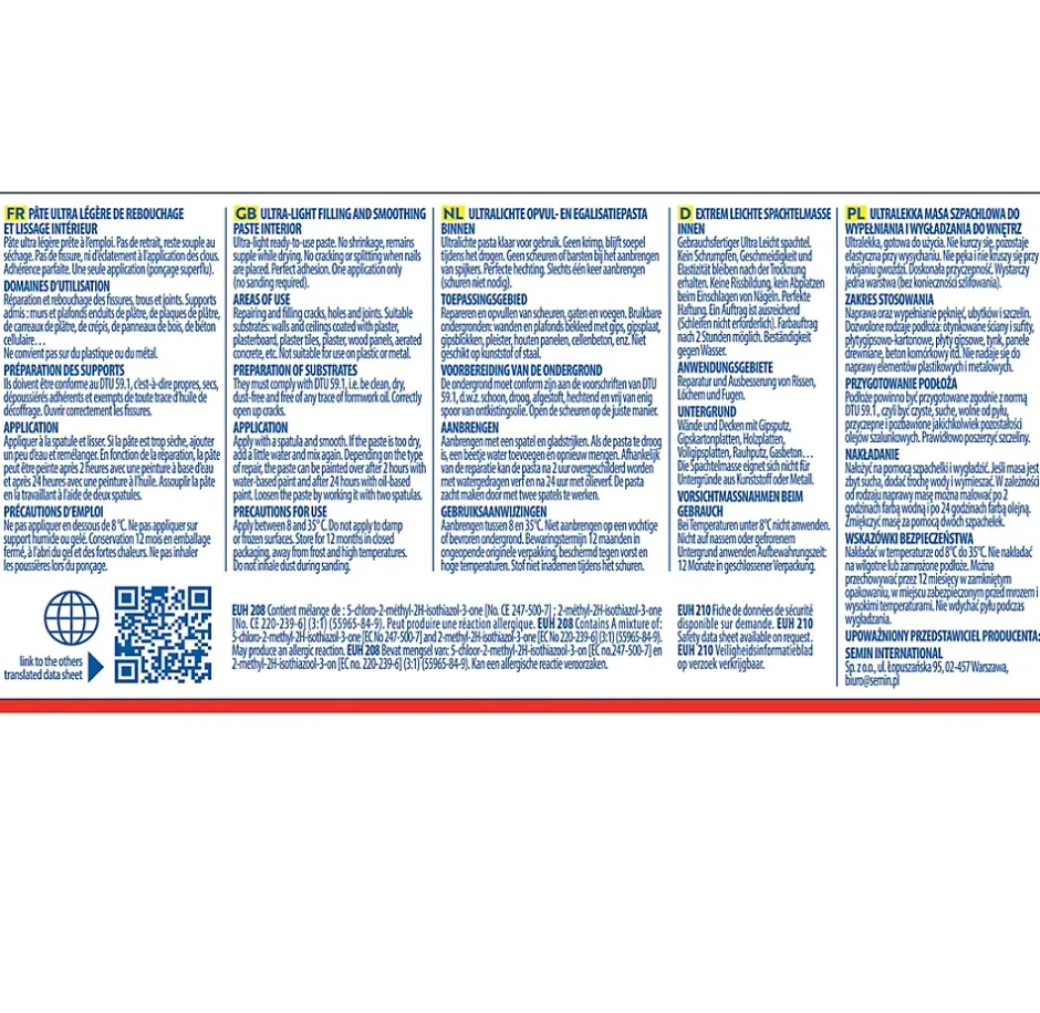 - Enduit de rebouchage grande blancheur