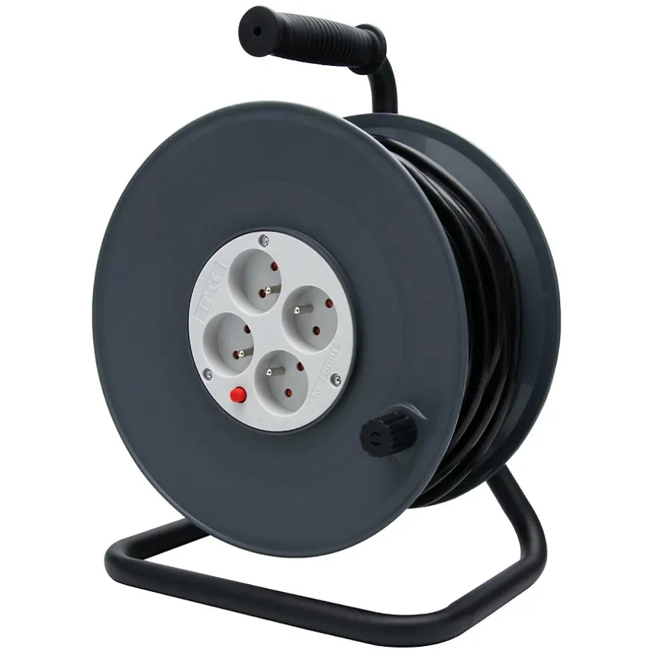 Enrouleur 4 prises. Couleur(s) : noir. Câblé en H05VV-F 3G1,5mm². Plusieurs longueurs : 15, 25, 40 ou 50m. Puissance max déroulé 3200W et enroulé 1100W sous 230V. Enrouleur 4 prises. Sécurité thermique. Norme(s) : NF. Robuste : Fixation au mur par vis avec un entraxe de 80mm. Double système de verrouillage frontale. Pratique : Stockez votre enrouleur soigneusement sur le mur ou disposez d’un point d’ancrage fixe pour son utilisation.