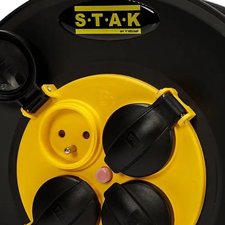 - Enrouleur professionnel 25 m avec câble néoprène H07RN-F 3G2,5 mm² et 4 prises protégées (IP44).