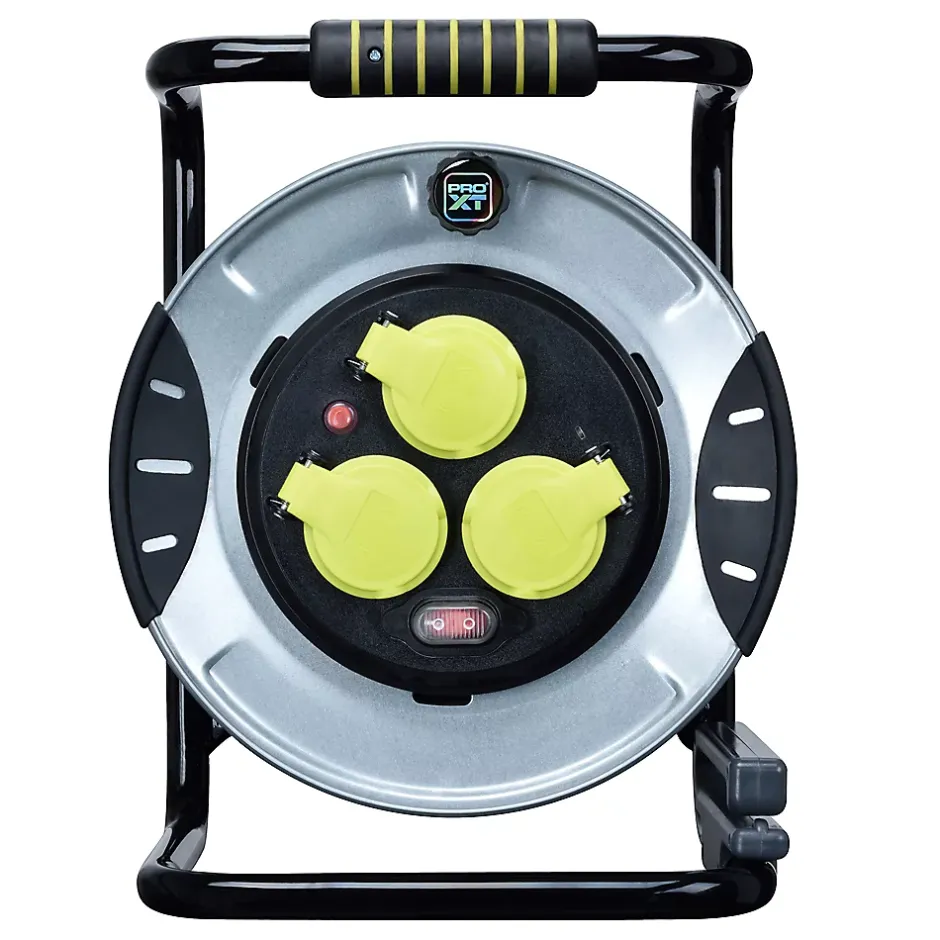 Enrouleur de chantier Diall H07RNF 3G1 5mm², 25m, ProXT, incluant : cache-prises sur interrupteur de prise.
