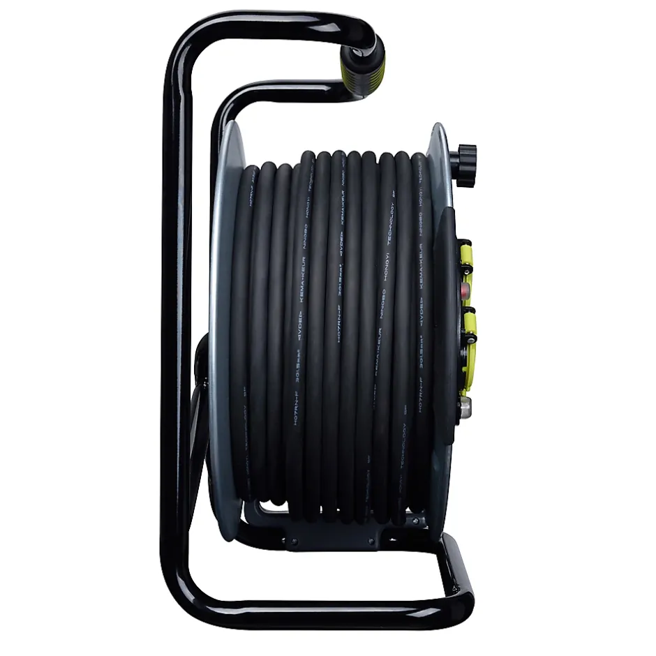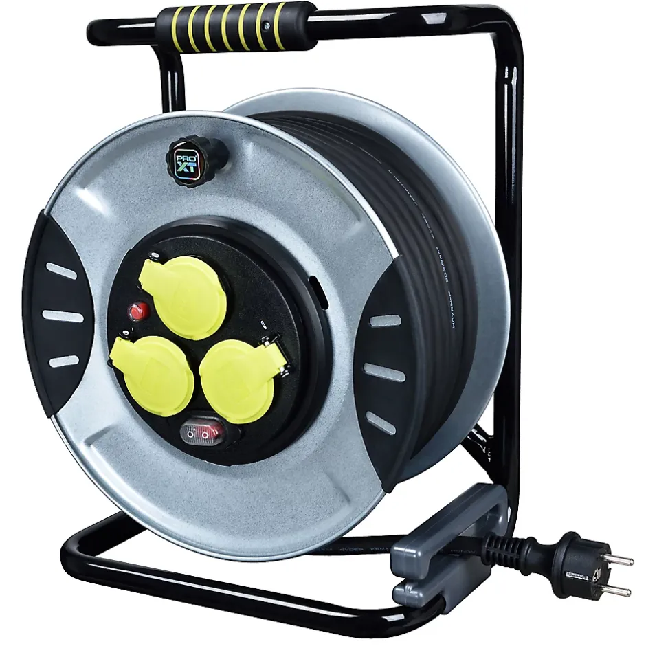 Enrouleur de chantier Diall H07RNF 3G2 5mm², 30m, ProXT, incluant cache-prises sur interrupteur de prise.