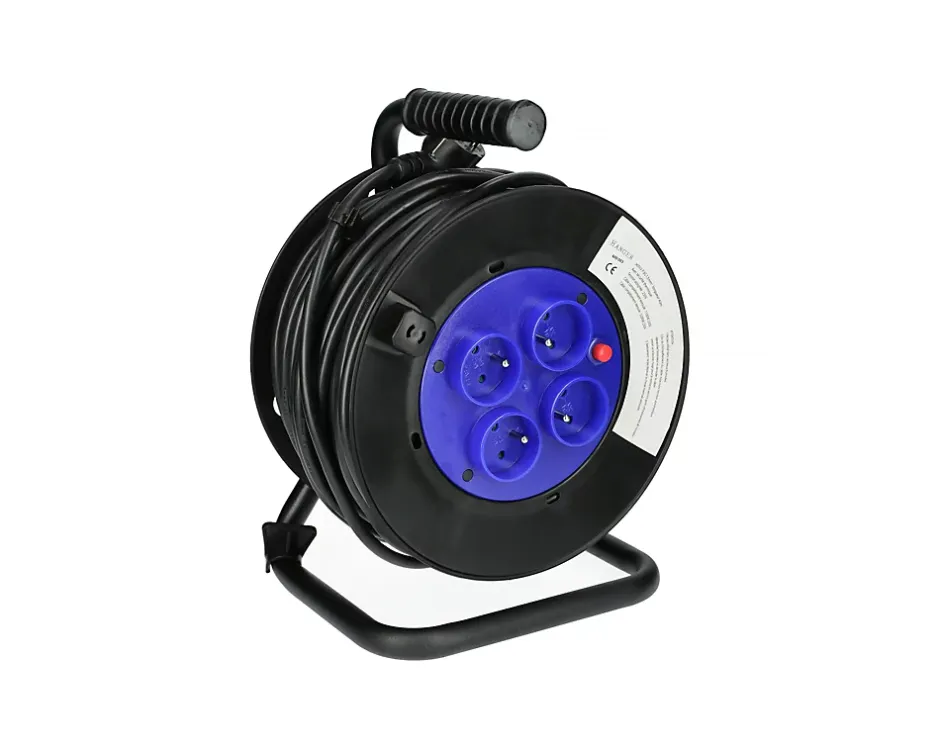 Cet enrouleur électrique est conçu pour offrir une solution pratique et sûre pour l’alimentation électrique mobile. Disponible en longueurs de 25 ou 40 mètres, il utilise un câble H05VV-F de section 3G 1,5 mm², garantissant une flexibilité et une robustesse adaptées à divers environnements de travail. Ce câble est conçu pour résister aux contraintes d’utilisation fréquente, offrant ainsi une durabilité accrue pour les applications professionnelles et domestiques.Fonctionnant sous une tension de 230 V, cet enrouleur électrique est équipé d’une protection thermique intégrée. Cette fonctionnalité essentielle protège l’appareil contre les surcharges et les surchauffes, assurant une sécurité optimale lors de l’utilisation prolongée. En cas de surchauffe, la protection thermique coupe automatiquement l’alimentation, évitant ainsi les risques de dommages matériels ou de blessures.Le socle de l’enrouleur est doté de quatre prises 2P+T, permettant de brancher plusieurs appareils électriques simultanément. Cette caractéristique en fait un outil polyvalent et pratique pour les chantiers, les ateliers ou même les usages domestiques nécessitant une source d’alimentation multiple. L’ensemble de ces caractéristiques fait de cet enrouleur électrique un choix fiable et efficace pour une gestion sécurisée et pratique de l’alimentation électrique mobile. Caractéristiques techniques :Tension : 230 VCâble : H05VV-FSection : 3G 1,5mm²Protection thermiqueSocle : 4 prises 2P + T Puissance maximale :Enroulé : 1000 WDéroulé : 3000 W