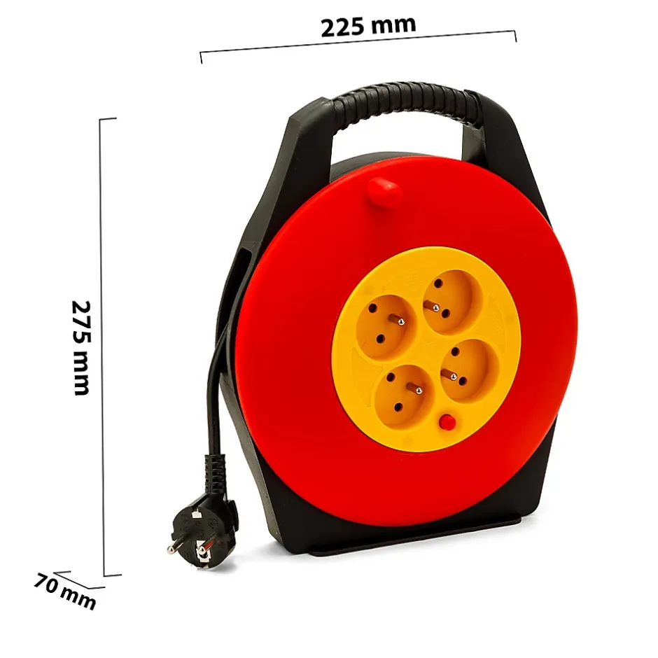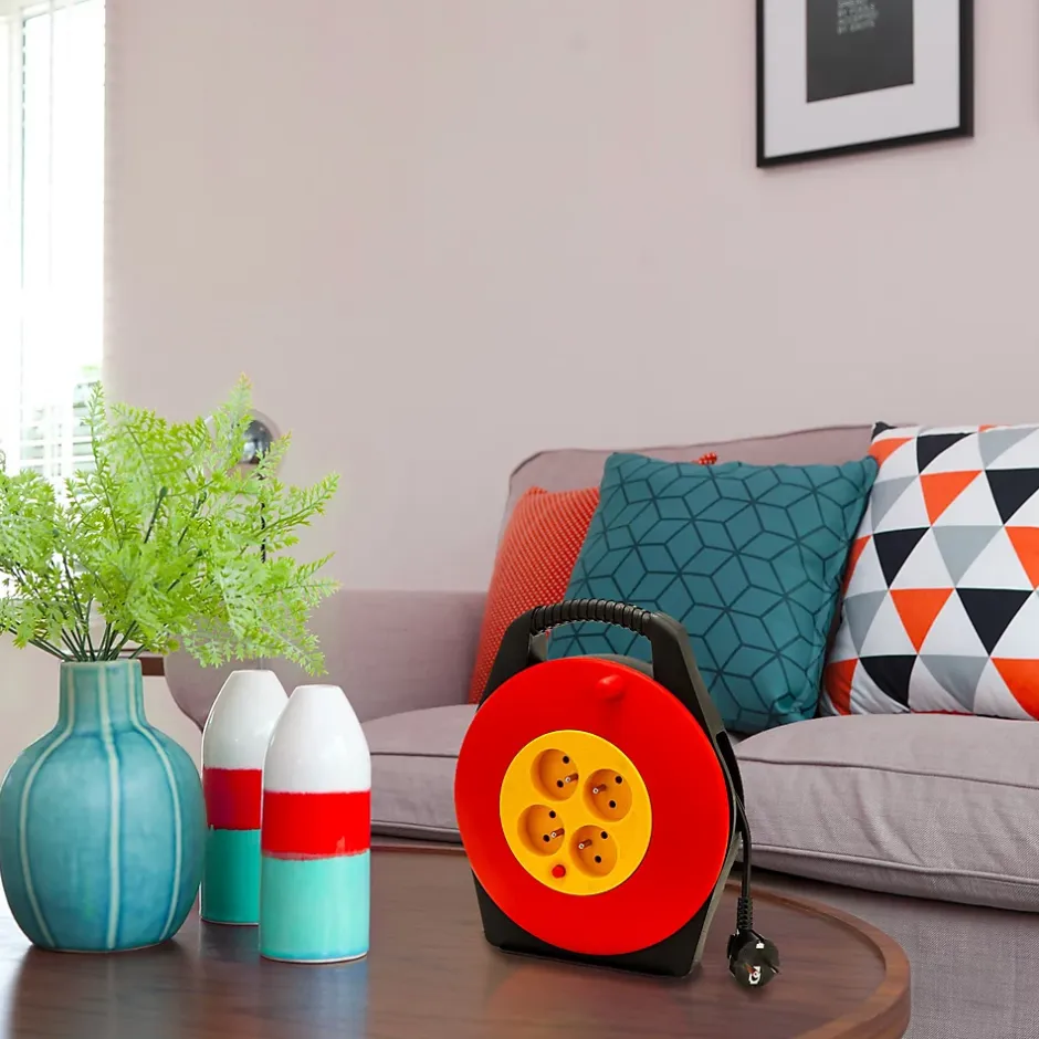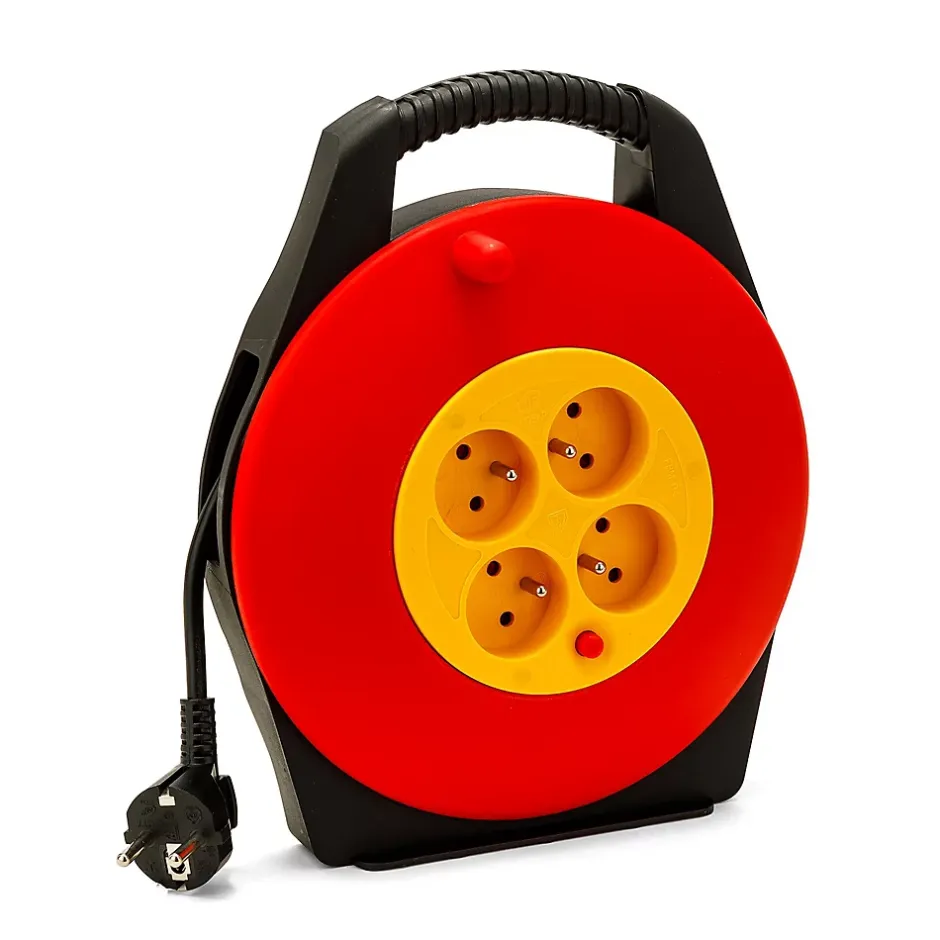 Enrouleur électrique domestique 10m, H05VV-F3G1.0MM2, 4 prises françaises 2P+T 16A, NF, CE