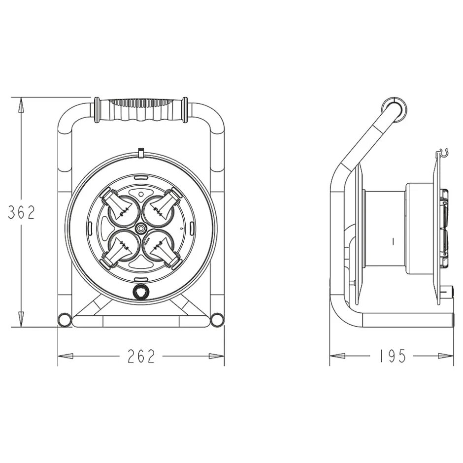 Un enrouleur puissant, robuste et sécurisé pour vos chantiersCet enrouleur électrique professionnel de 25 mètres est conçu pour répondre aux exigences des chantiers et des environnements exigeants, aussi bien en intérieur qu’en extérieur. Il est équipé d’un câble H07RN-F 3G2.5 mm², offrant une grande résistance aux conditions difficiles (abrasion, huile, eau). Grâce à ses 4 prises 16A IP44 à clapet, il permet d’alimenter plusieurs outils électriques en toute sécurité.Les avantages de cet enrouleur de chantierPlatine fixe anti-twist : évite la torsion du câble et assure une utilisation fluide et sans enchevêtrement.Disjoncteur thermique : protège vos appareils et évite la surchauffe en cas de surcharge.Protection enfant intégrée : limite les risques d’accident pour une sécurité renforcée.Poignée ergonomique : facilite le transport et la manipulation sur les chantiers.Frein tambour : assure un enroulement maîtrisé et évite le déroulement accidentel du câble.Socle en métal robuste : garantit une excellente stabilité et une durabilité accrue, même en environnement difficile.Caractéristiques techniquesTension : 220 – 240 VAmpérage : 16 AIndice de protection : IP44 (protection contre les projections d’eau et les corps solides supérieurs à 1 mm)Nombre de prises : 4 prises avec clapet de protectionType de câble : H07RN-F, ultra-résistantLongueur du câble : 25 mètresSection du câble : 3G2.5 mm²Terre : ouiProtection thermique : par disjoncteur intégréPuissance max déroulé : 3200 WPuissance max enroulé : 1100 WNormes : CE, NF, RoHSGarantie : 2 ansAvec ses performances élevées et sa conception robuste, cet enrouleur est l’allié indispensable pour sécuriser et faciliter vos travaux électriques sur chantier.