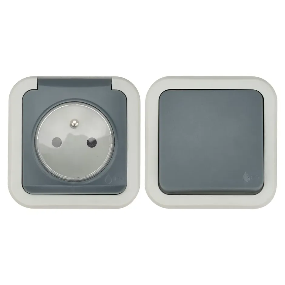 Ensemble 2 prises avec terre monobloc et 1 interrupteur va-et-vient étanche Jacobsen Malinn