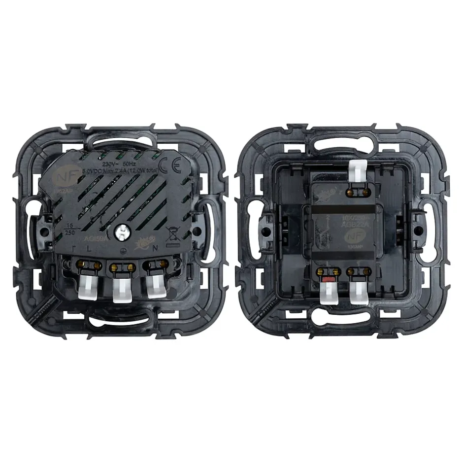 Découvrez la combinaison parfaite pour un style de vie moderne : le pack Jacobsen Espen, incluant 2 interrupteurs va-et-vient et 1 prise avec 1 port USB-A et 1 port USB-C. La prise représente un atout polyvalent et homogène pour chaque pièce, tandis que les interrupteurs va-et-vient permettent de commander l’éclairage sans effort. Ce pack incontournable vous permet de recharger vos appareils sans avoir recours à des adaptateurs encombrants, tout en apportant une touche de raffinement à votre espace. La gamme Jacobsen Espen est une série modulaire qui vous permet de créer un produit personnalisé adapté à vos besoins. Associez n’importe quel interrupteur ou prise à toute une série de plaques de finition pour obtenir l’effet désiré. Ce pack est toutefois fourni avec des plaques de finition blanches pour permettre une installation immédiate. Installation possible avec des vis (ou avec des griffes, vendues séparément, pour tout projet de rénovation). Profondeur recommandée de la boîte d’encastrement pour l’installation : 40mm (pour l’interrupteur va-et-vient) / 50mm pour la prise en saillie avec USB A+C. Câblage et installation faciles grâce aux bornes automatiques « enfichables » à l’arrière du produit et aux bornes colorées. Le guide de jauge de dénudage intégré vous permet de couper les câbles à la longueur idéale pour un montage optimal. *Fabriqué en plastique recyclé : interrupteur va-et-vient (89,16% de polycarbonate recyclé) / prise avec USB A+C (51,71% de polycarbonate recyclé). Les interrupteurs et prises Jacobsen sont simples, modernes et de qualité professionnelle. Une solution adaptée à tous les intérieurs. Avec Jacobsen, restez connectés.