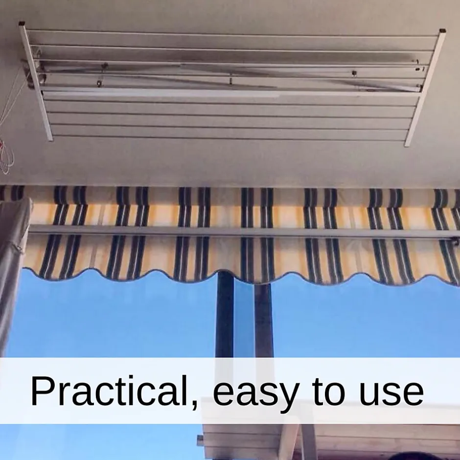 - Foxydry Mini peut être abaissé jusqu’à 1,80 mètre du plafond et bloqué à n’importe quelle hauteur, vous permettant d’étendre votre linge à une hauteur confortable et accessible.