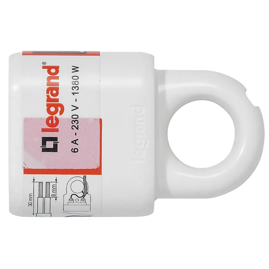 Fiche femelle 6A 2 P+T blanc avec anneau Legrand