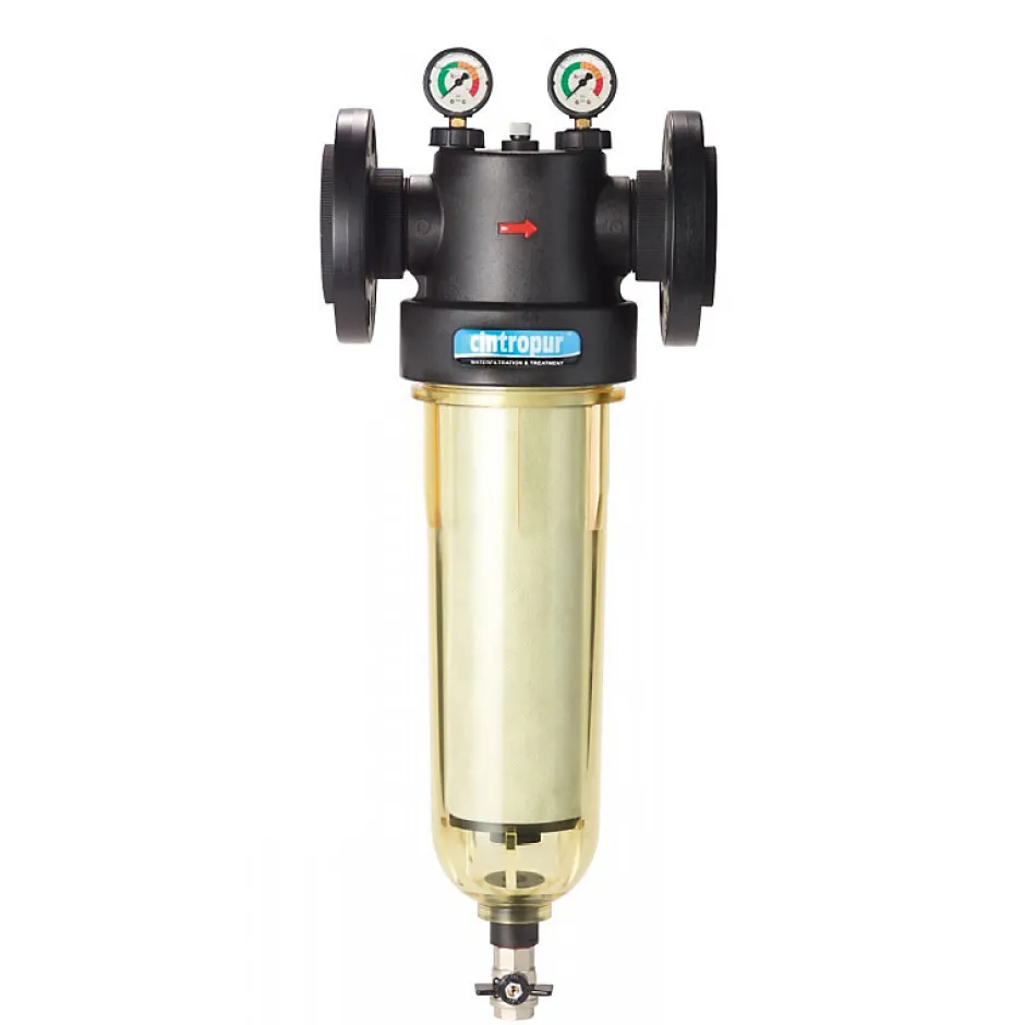 Filtre à eau CINTROPUR NW650 – 131/62 2 » 1/2Fabriqués entièrement en matière synthétique de première qualité, les filtres Cintropur conviennent pour usage alimentaire et eau potable.L’hélice Cintropur transforme le flux d’eau en effet centrifuge par la précipitation de particules pesantes dans le bas de la cloche, tandis que la manche filtrante assure la filtration finale suivant la finesse choisie.Livré avec filtre 25µ et clé.Principe de base :Protection d’installations industrielles, collectives et agricoles par la filtration de particules solides (terre, sable, particules de rouille…) en suspension dans l’eau.Application :Industrie : Protection des réseaux sanitaires et machines-outils de productionAgriculture : Filtration sur réseaux d’arrosage, des eaux d’abreuvages des animaux et des eaux de pluie et de puits.Collectivités : hôtels, restaurants, écoles, immeubles de bureaux, protections des réseaux sanitaires et accessoires électroménagers raccordés.Avantages :Grand débitFaible perte de chargePréfiltration centrifuge à effet cycloniqueAppareil d’une haute technicité, robuste doté d’une grande fiabilitéPurge intérieure rapide et aiséeSystème exclusif et peu coûteuxVisualisation permanent de l’encrassement du tamis filtrant par l’utilisation d’une cloche transparente.Ce porte-filtre est livré avec un filtre standard 25µ, mais il peut également recevoir les cartouches de polyphosphates, silicates, silico-polyphosphates ou charbon actif.Caractéristiques :débit moyen (m3/h) = 25pression de service = 10 barspression maximale d’utilisation = 16 barsTempérature max : 50°CPoids 7 kgSurface de filtration : 1288 cm2