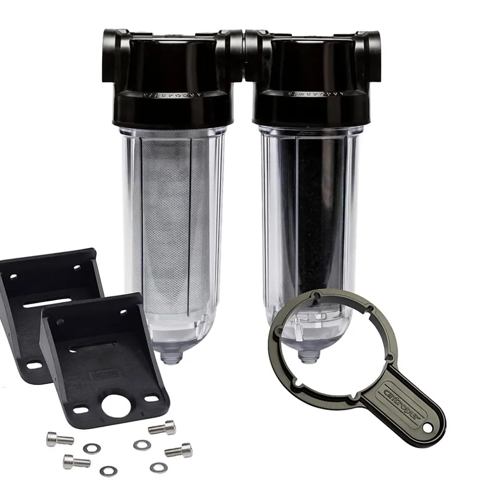 SL 240 Duo CTN 1″ – Filtre à compact CINTROPUR 25 micronsLe filtre CINTROPUR SL240 DUO CTN 1″ est conçu pour une filtration efficace et fiable de l’eau. Fabriqué entièrement en matière synthétique de qualité premium, il convient parfaitement à un usage domestique, pour le traitement de l’eau de réeau, de source, puits ou récupération de l’eau de pluie.Applications du filtre compact cintropur FWCCNW24DUOCTN1 :Le filtre centrifuge anti-sédiment 25µ Cintropur est conçu pour garantir une eau propre et saine dans vos installations. Sa filtration au charbon actif permet d’éliminer les goûts et les odeurs désagréables de l’eau. Le charbon actif permettra de filtrer l’eau du robinet du chlore, des pesticides et des métaux lourds, potentiellement présents dans votre eau de réseau.Grâce au mécanisme interne du filtre, le temps de contact entre l’eau et le charbon actif sera maximum, ce qui garantit une efficacité optimale du traitement.Traitement de l’eau de réeauTraitement eau de sourceTraitement eau de puits ou récupération de l’eau de pluieCaractéristiques techniques du filtre à eau compact cintropur :Seuil de filtration : 25 microns + charbon actifDébit max : 2,5 m³/hPression maximale : 12 barsTempérature maximale de l’eau : 50 °CRaccordement entrée / sortie : 1″ Matériaux : Polypropylène / SAN / NBR / Polyéthylène / PolyesterDimensions (L x l x H) : 144 x 260 x 366 mmVolume de traitement : 0,57 litresPays de fabrication : BelgiqueRéférence fabricant : FWCCNW24DUOCTN1 Installation et entretien du filtre à sédiment cintropur : Installation recommandée en entrée d’installation, après le compteurCompatible avec les réseaux domestiques standardsCartouche jetable, à remplacer périodiquement selon la qualité de l’eauRenouveler 2 à 3 fois par an le charbon actifFiltre équipé d’un système de purge facilitant le nettoyage du tamis