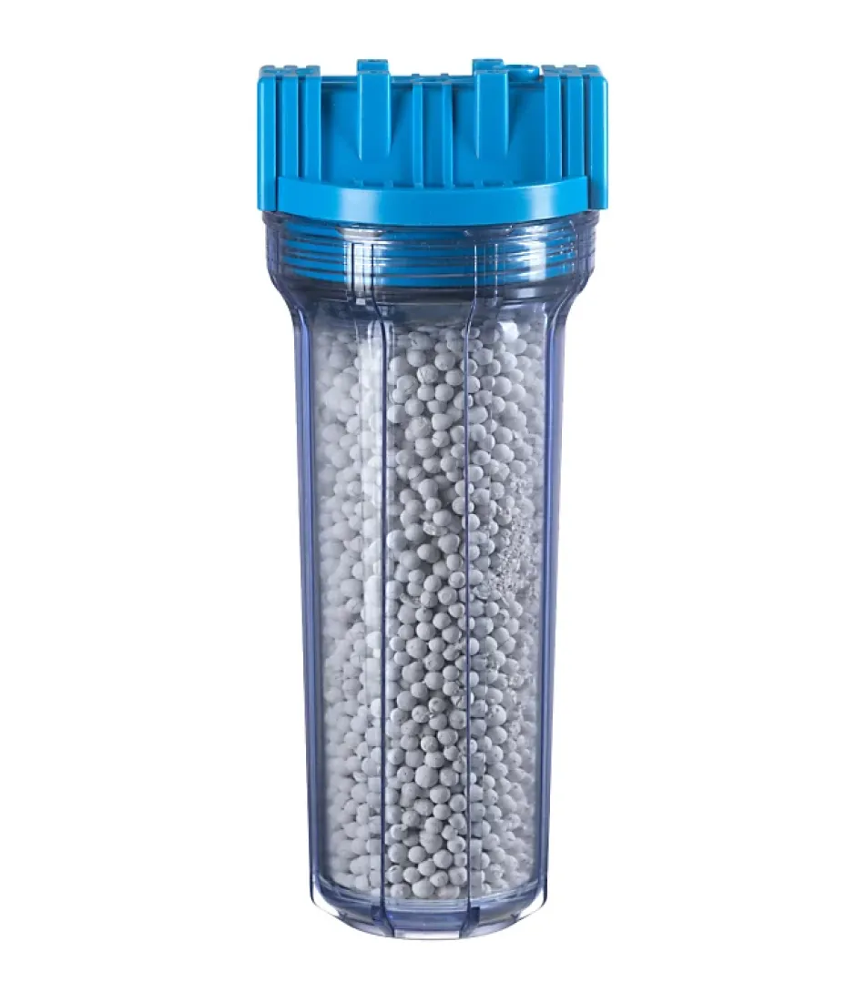 Filtre NE 40 Comment fonctionne un filtre neutraliseur de condensats ? Grâce aux billes rechargeables, il filtre les eaux acides rejetées par les chaudières à condensation avant qu’elles ne rejoignent les eaux usées. En effet, l’eau issue de la combustion dans la chaudière a un pH très bas (acide), elle doit donc être filtrée pour ne pas être une source de pollution. Le filtre est conçu avec un siphon intégré qui permet d’éviter une remontée d’odeur. La neutralisation des acides contenus dans les condensats se fait principalement grâce à de l’oxyde de magnésium qui est présent dans la bille. Avec quelle chaudière ce filtre est-il compatible ? Convient pour des chaudières à gaz ou au fioul murales à condensation allant jusqu’à 40 kW, ou pour des emplacements restreints. Depuis 2002, les condensats doivent être traités obligatoirement : DTU N°60-1 i NF P16 – 250 – 1 IFEN12056 Entretien facile : Filtre rechargeable ( Cliquez ici pour accéder à la recharge en pot de 2 kg ).Les remplir de billes dès que la cuve est à moitié vide, soit tous les 6 mois en moyenne. Consommation moyenne constatée pour une chaudière à condensation murale à gaz : de 225 gr de billes pour 23 KW sous conditions de test en laboratoire. Que contient le colis ? Le colis contient : – un filtre rechargeable – une équerre- une clé de desserrage- 2 raccords PVC filetés 3/4″ à coller MxF 25/32 Consommation moyenne constatée pour une chaudière à condensation murale à gaz : 350 gr pour 40 KW, sous conditions de test en laboratoire. Cliquez ici pour accéder au Filtre Neutraliseur NE 23 adapté aux chaudières allant jusqu’à 23 kW.