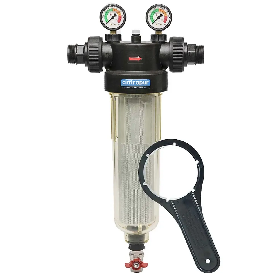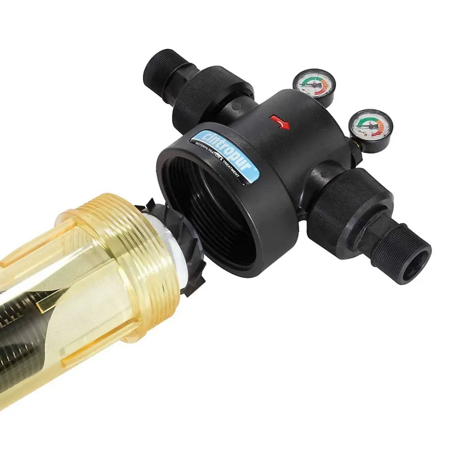 NW340 Filtre à sédiment CINTROPUR 25 micronsLe filtre à sédiments CINTROPUR est utilisé pour éliminer les particules solides en suspension dans l’eau.Fabriqué en Belgique, ce filtre se distingue par sa conception robuste, ses matériaux techniques résistants et son débit adapté aux installations domestiques standards.Applications du filtre anti impuretés cintropur FWCCNW340 :Voici les principales utilisations d’un filtre anti impuretés CINTROPUR NW340 1″1/4 :Filtration industrielle : Protège les reseaux sanitaires et les machines outils de production en éliminant les particules telles que le sable, la boue, la rouille, les algues et autres impuretés présentes dans l’eau de distributionPré-filtration : Il sert de pré-filtre pour d’autres systèmes de traitement de l’eau comme les adoucisseurs, les filtres à charbon actif, les osmoseurs…Filtration agricole : Sert de filtre pour les eaux d’arrosage ou d’abreuvage pour les animauxCaractéristiques techniques du filtre à sédiments cintropur :Seuil de filtration : 25 micronsDébit nominal : 10 m³/hSurface de filtration : 770 cm2Pression de fonctionnement : 10 barsPression maximale : 16 barsTempérature maximale de l’eau : 50 °CRaccordement entrée / sortie : 1″1/4 – 33/42Matériaux : Polyéthylène / SAN / ABSDimensions (L x l x H) : 284 x 130 x 573 mmPays de fabrication : BelgiqueRéférence fabricant : FWCCNW340 Installation et entretien du filtre à sédiment cintropur NW340 : Installation recommandée en entrée d’installation, après le compteurCompatible avec les réseaux domestiques standards en 33/42Manchon jetable, à remplacer périodiquement selon la qualité de l’eauFiltre équipé d’un système de purge facilitant le nettoyage du tamis
