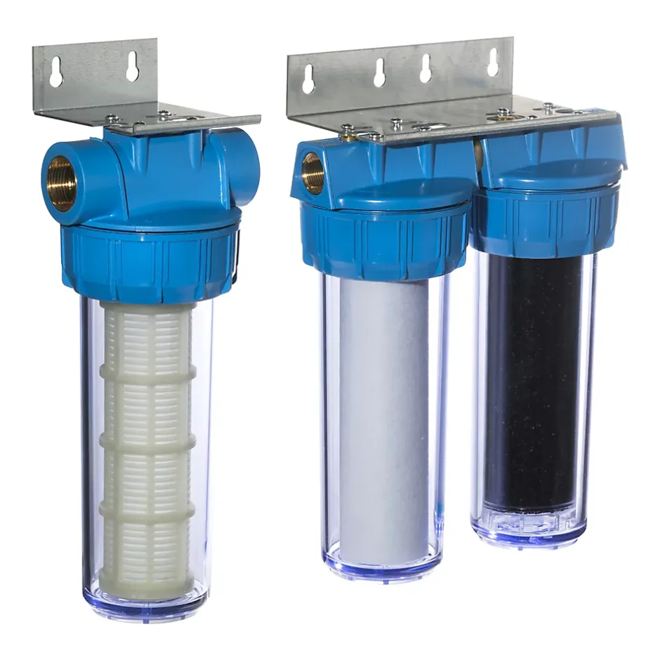 - Le premier filtre est séparable et peut se mettre avant la pompe pour la protéger des impuretés.