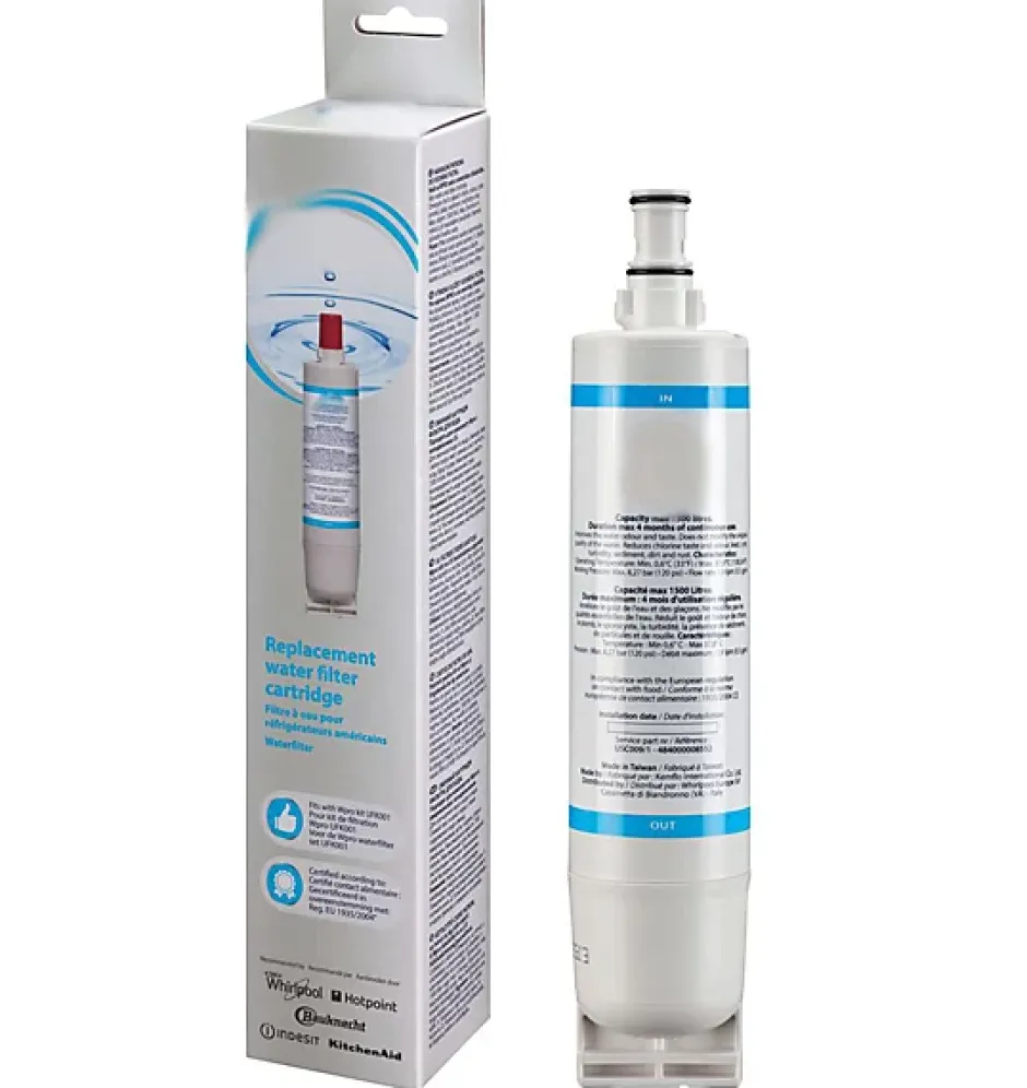 484000008726 Filtre à eau pour Réfrigérateur Américain Whirlpool SBS002 Diamètre : 5,1 cm Longueur : 25 cm Une eau pure parfaitement saine et des glacons translucides. Filtre à eau pour les réfrigérateurs américains Whirlpool. Le filtre à eau interne Wpro filtre réduit la teneur en chlore, les mauvaises odeurs et les impuretés de l’eau pour une meilleure hygiène. Filtre à eau interne simple à installer grâce à son système ¼ de tour, il se positionne directement à l’intérieur du réfrigérateur. À remplacer tous les 6 mois afin de conserver la capacité de filtration et garantir ainsi la qualité de l’eau du distributeur. Pièce détachée adaptable Whirlpool 481281729632 Toutes les pièces détachées Whirlpool